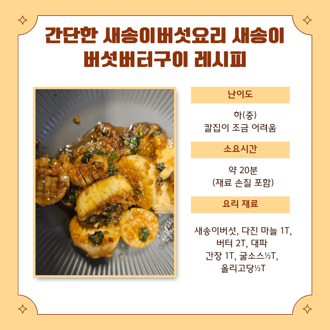 새송이버섯, 다진 마늘 1T, 버터 2T, 대파