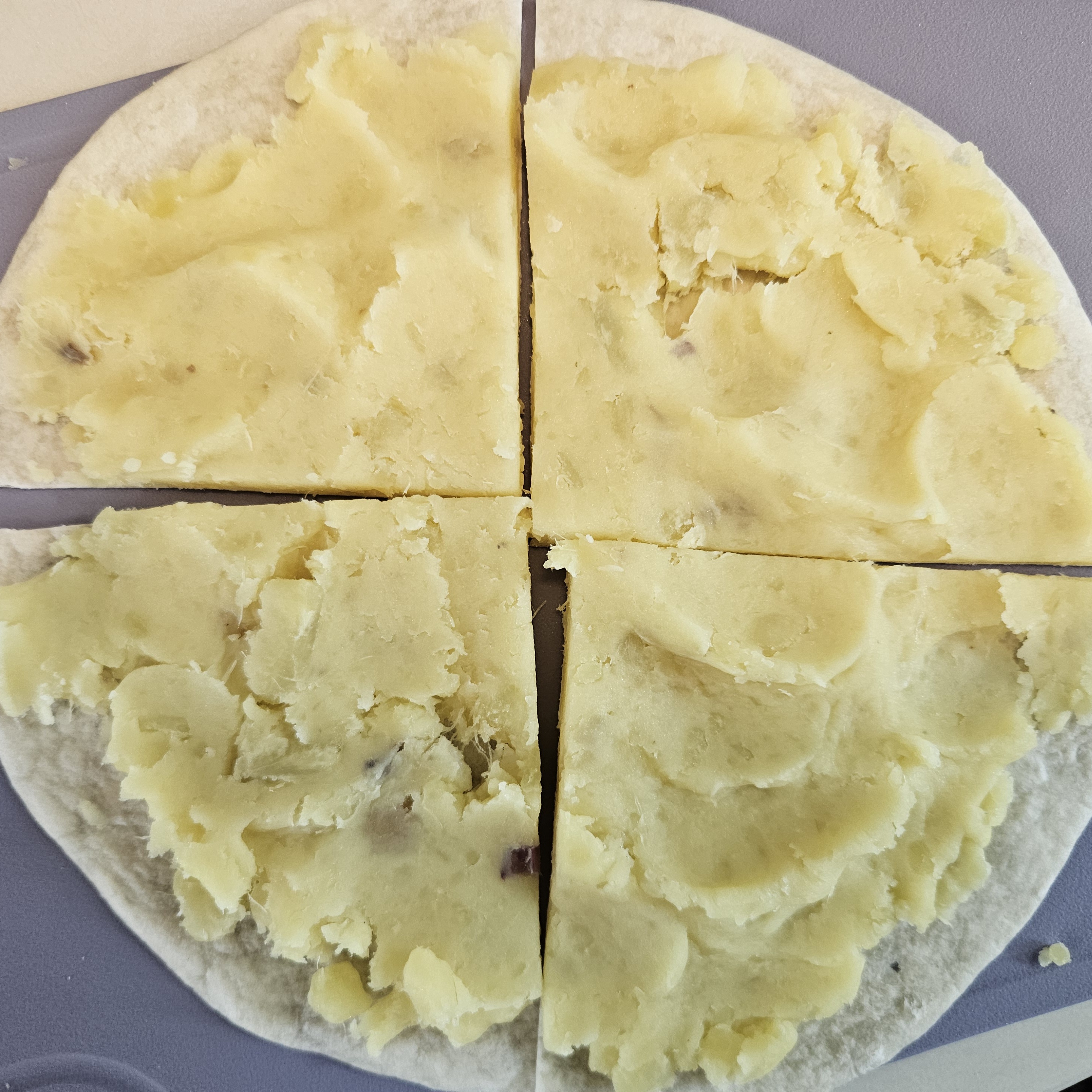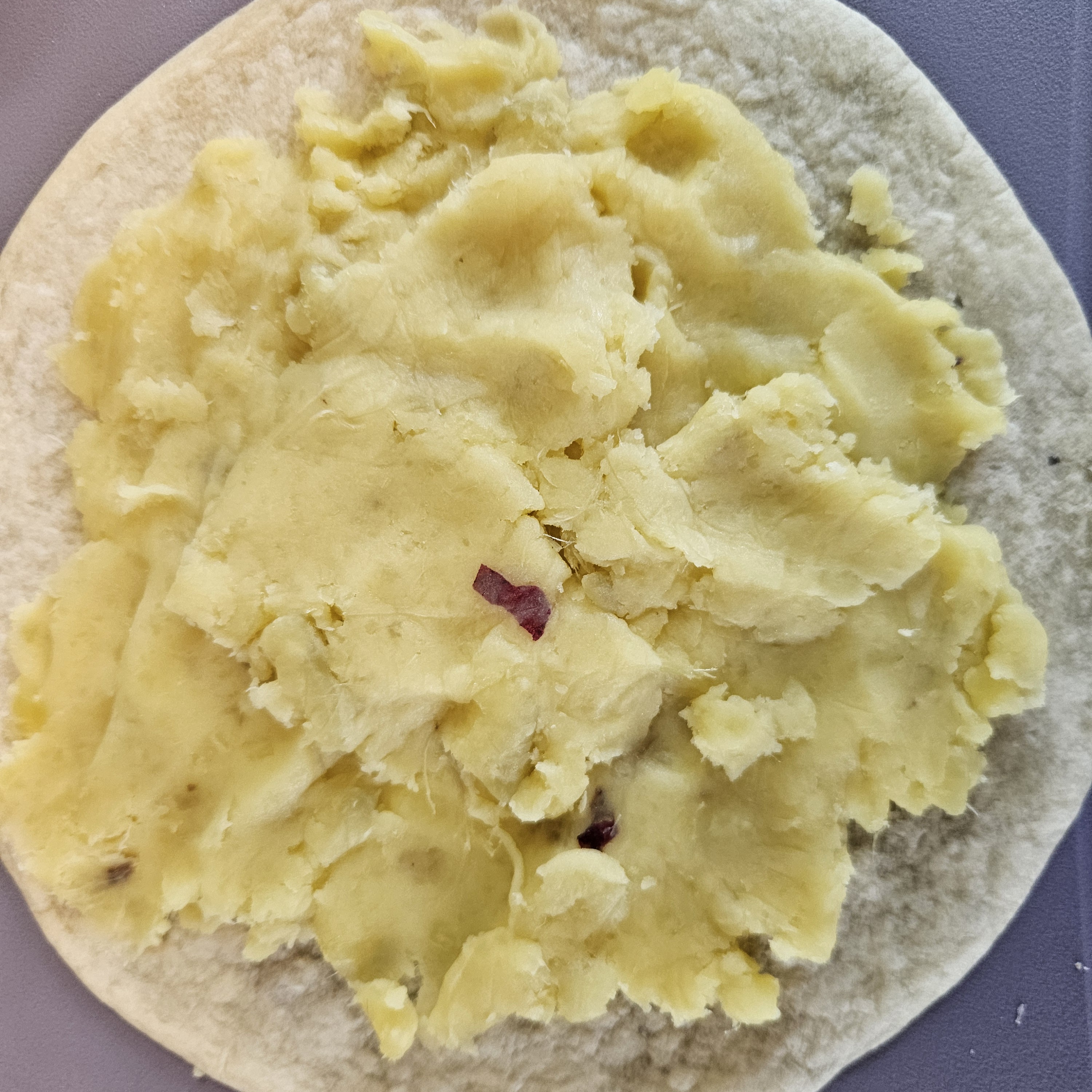 ▼4. 그다음 또띠아 위에 주물럭거렸던