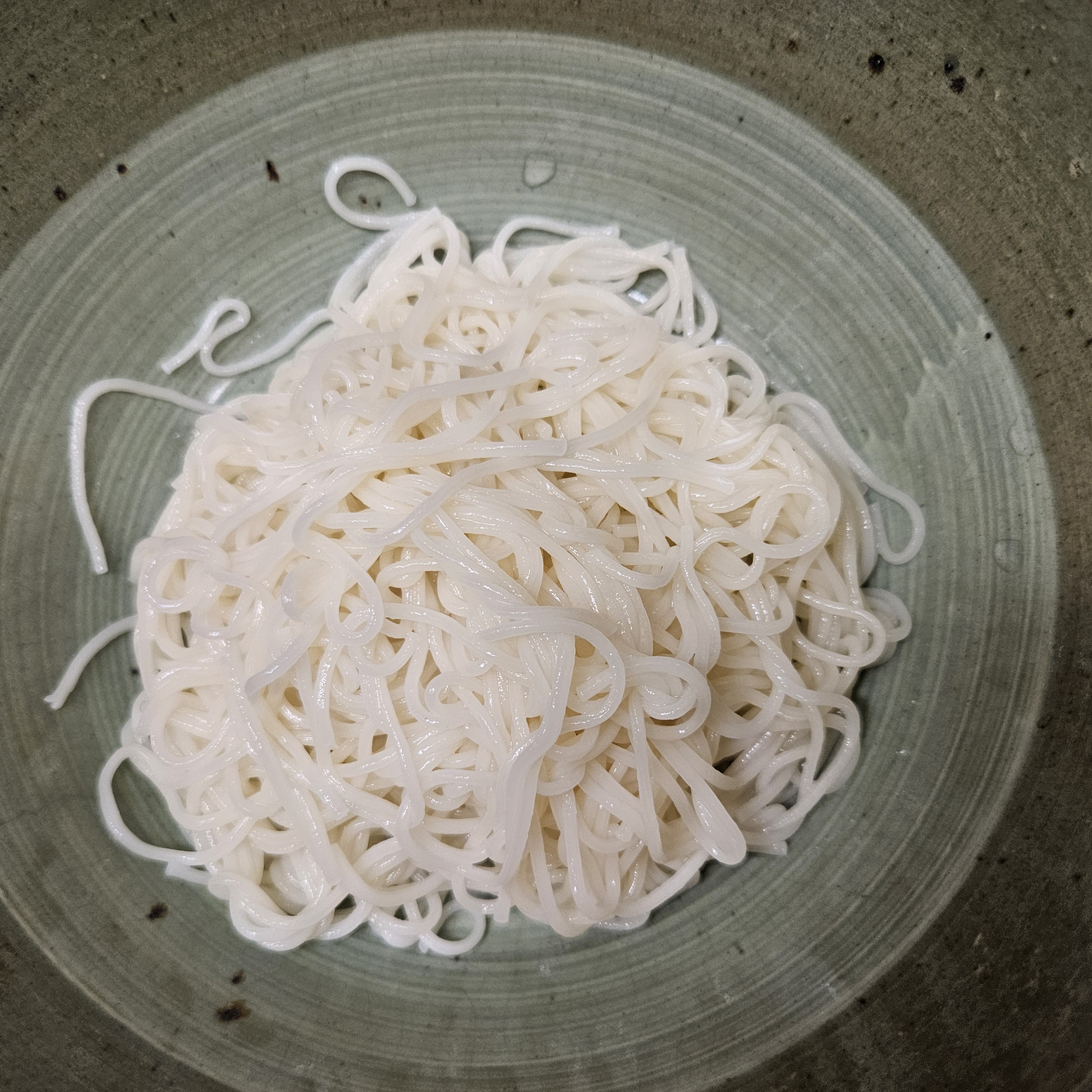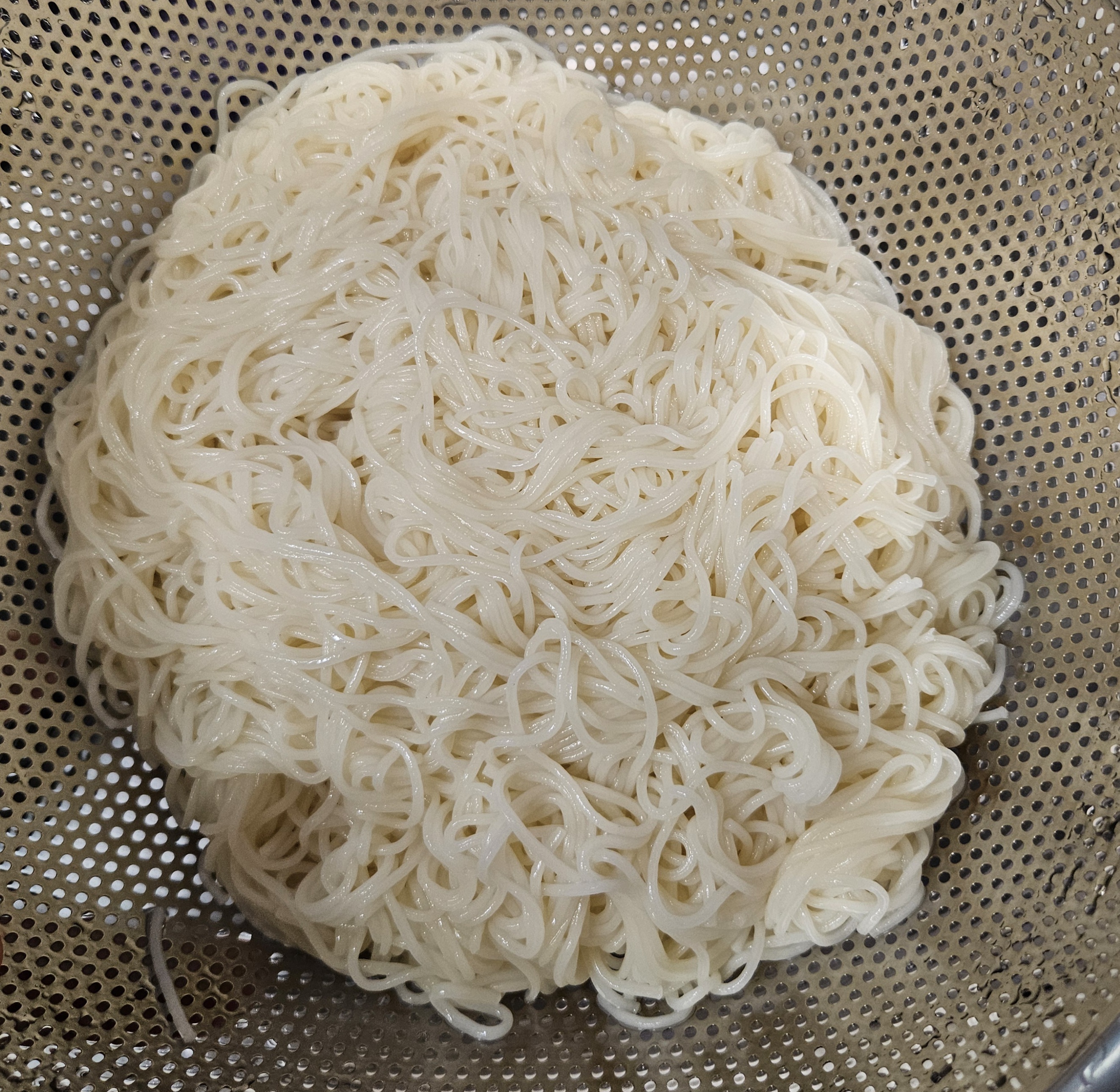 ▼2. 다 삶은 소면은 찬물로 헹궈줍니다.