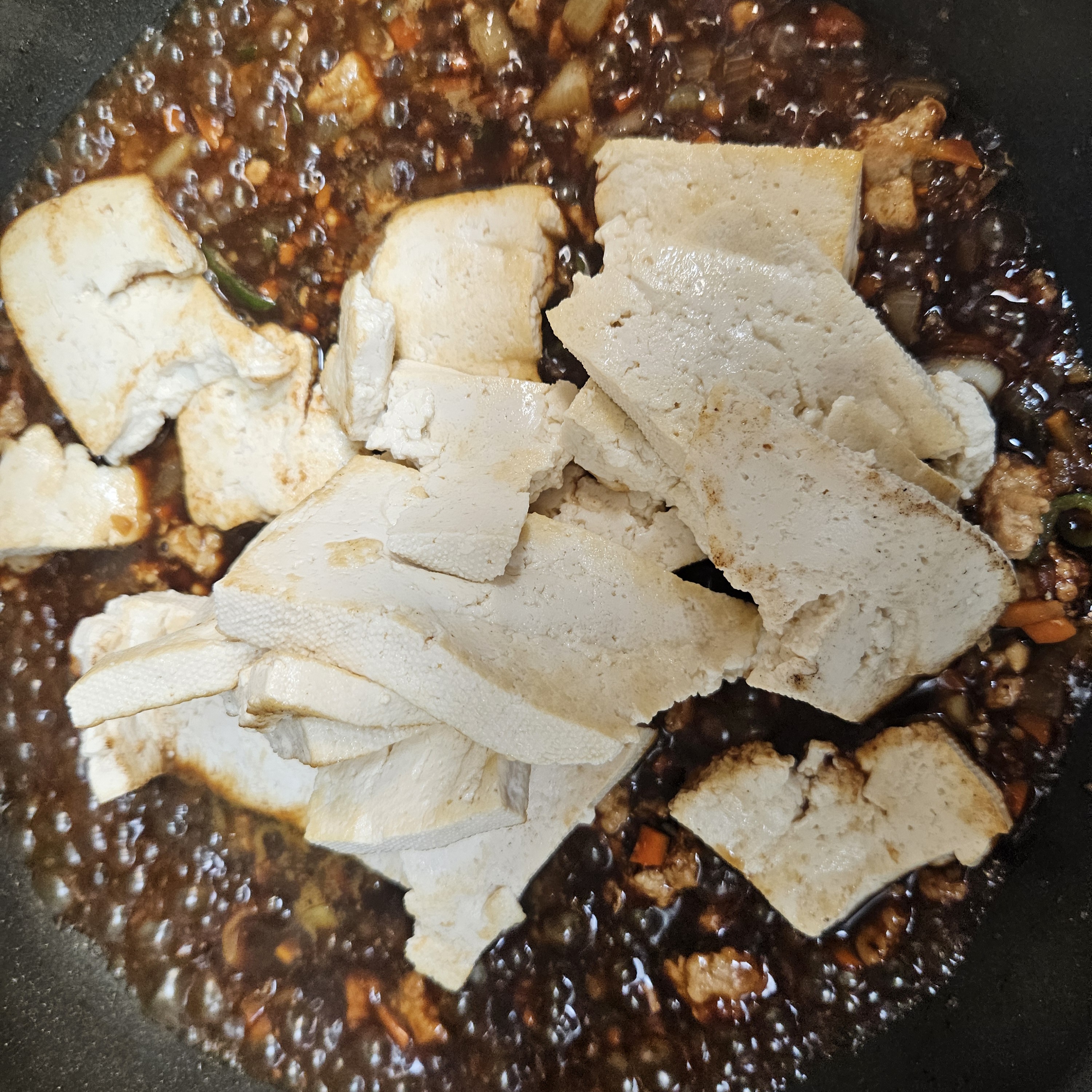미리 부쳐놓았던 두부를 넣고 졸여줍니다.