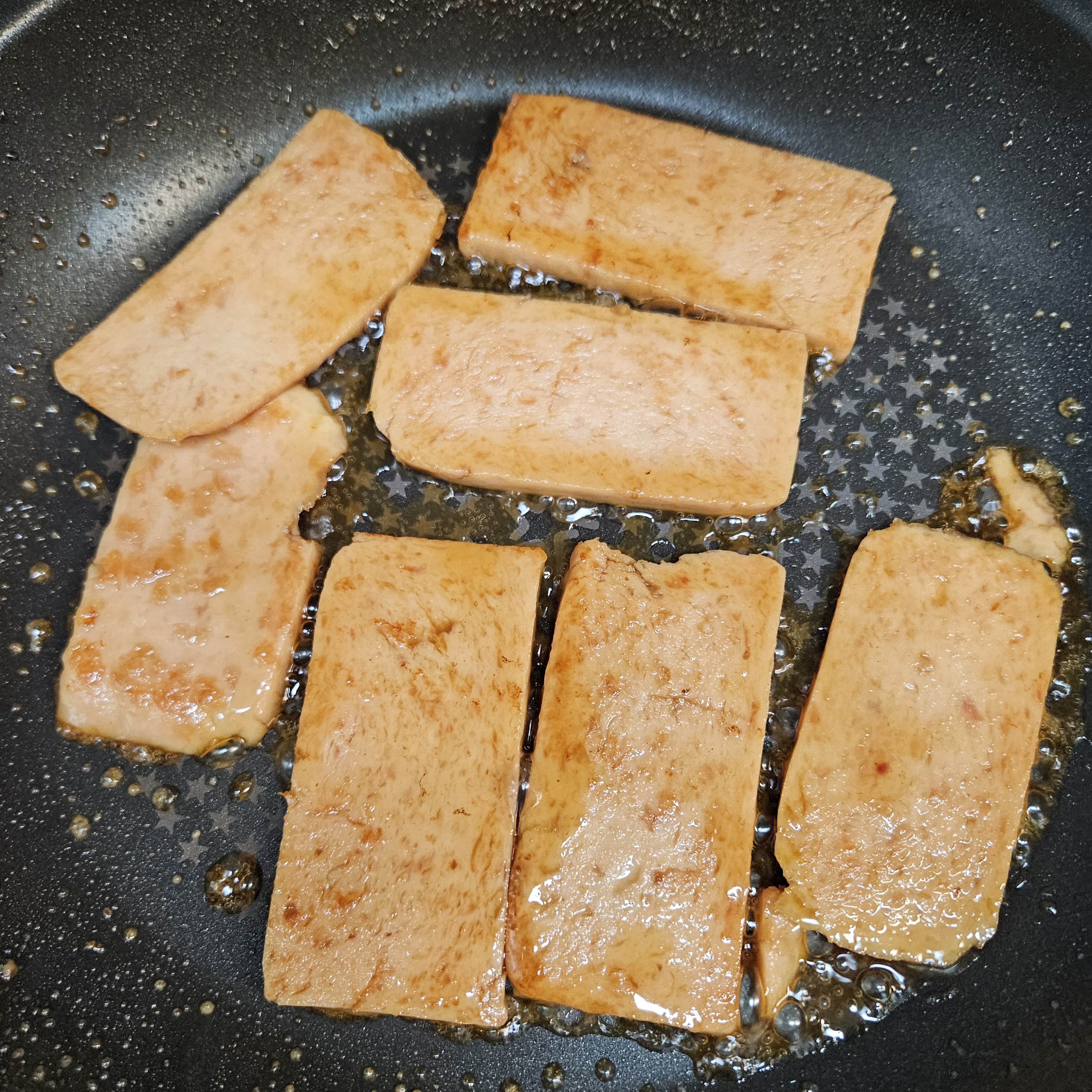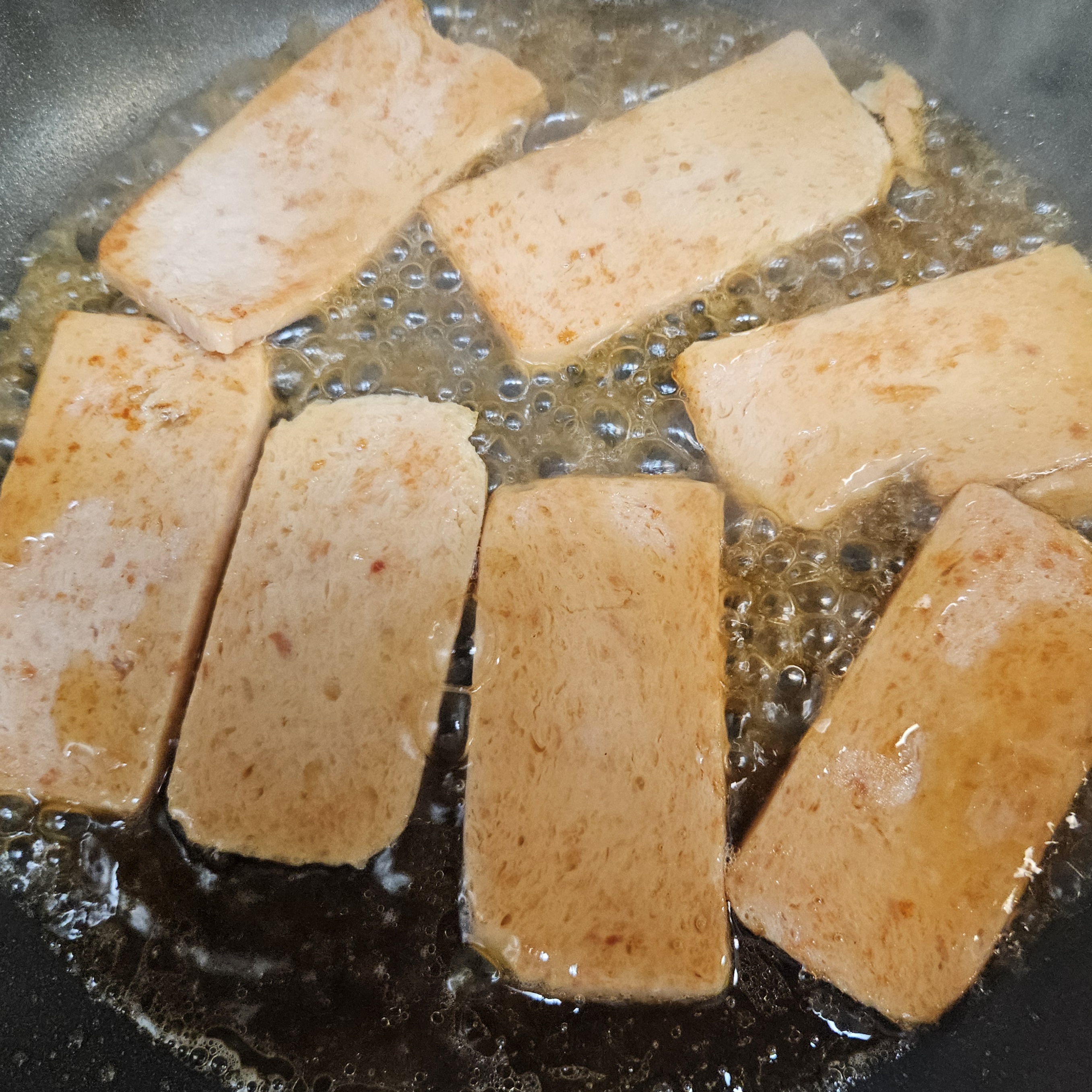 ▼뜨거운 물에 한번 데친 스팸은