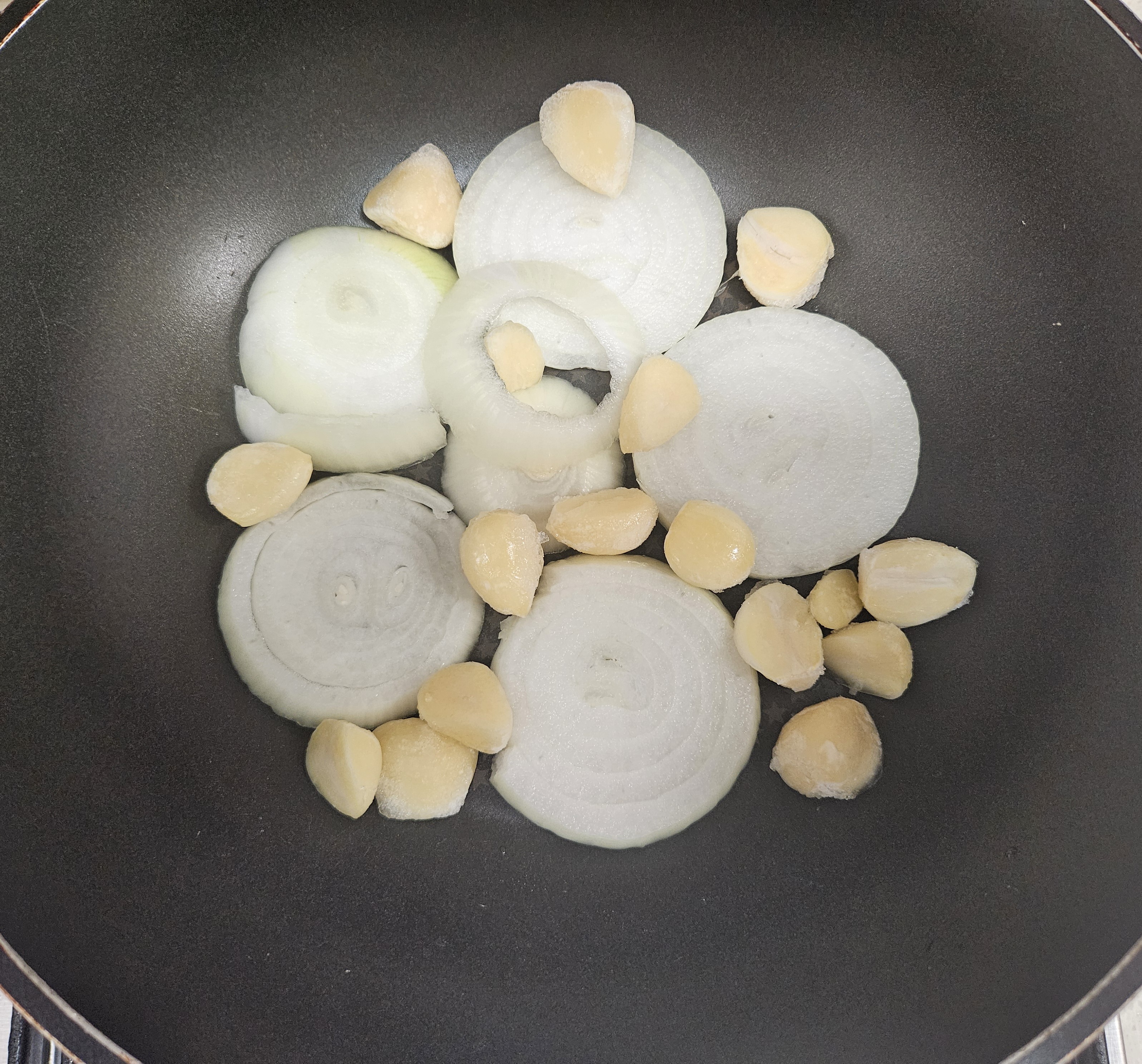 ▼2. 그다음 슬라이스 친 양파을 냄비에 넣고