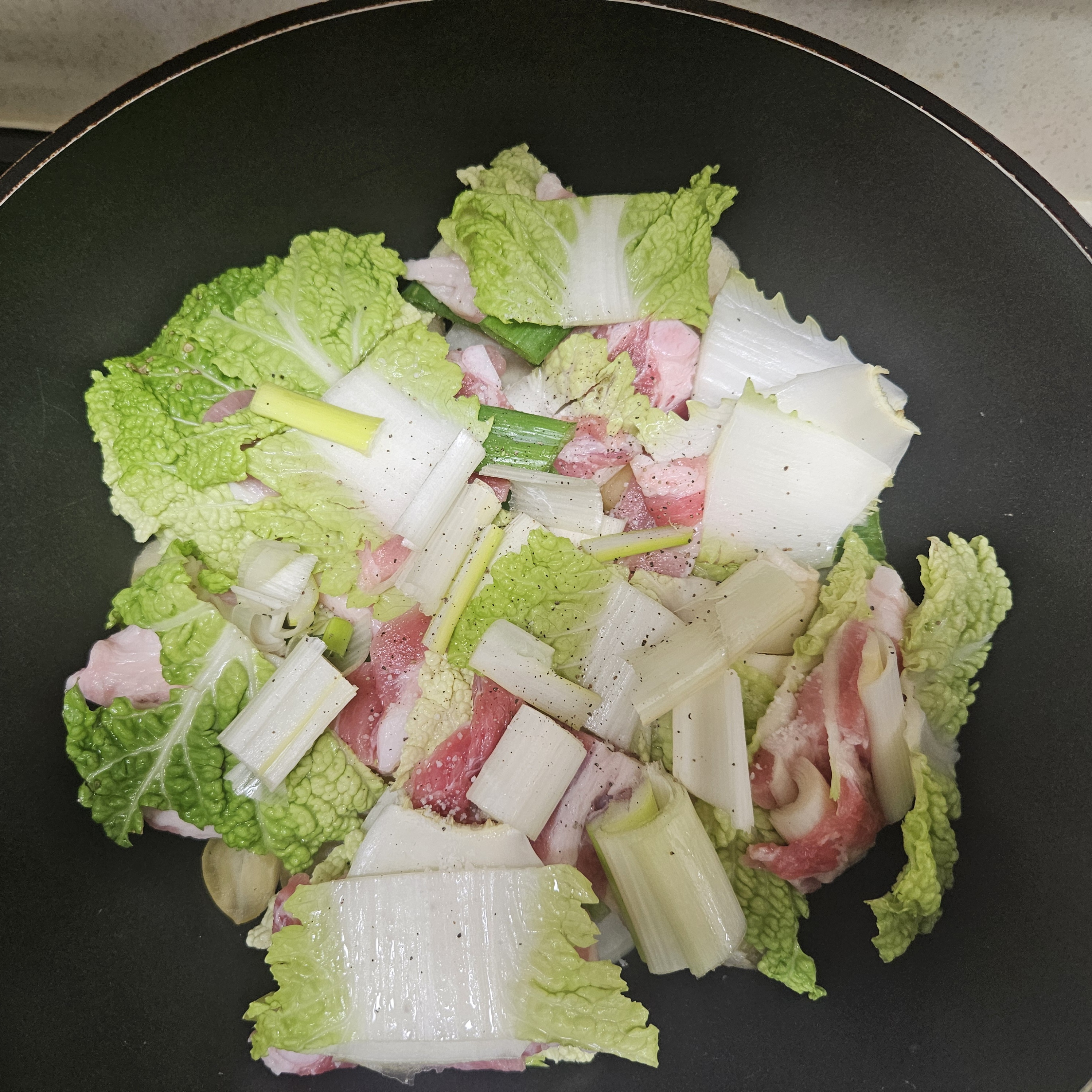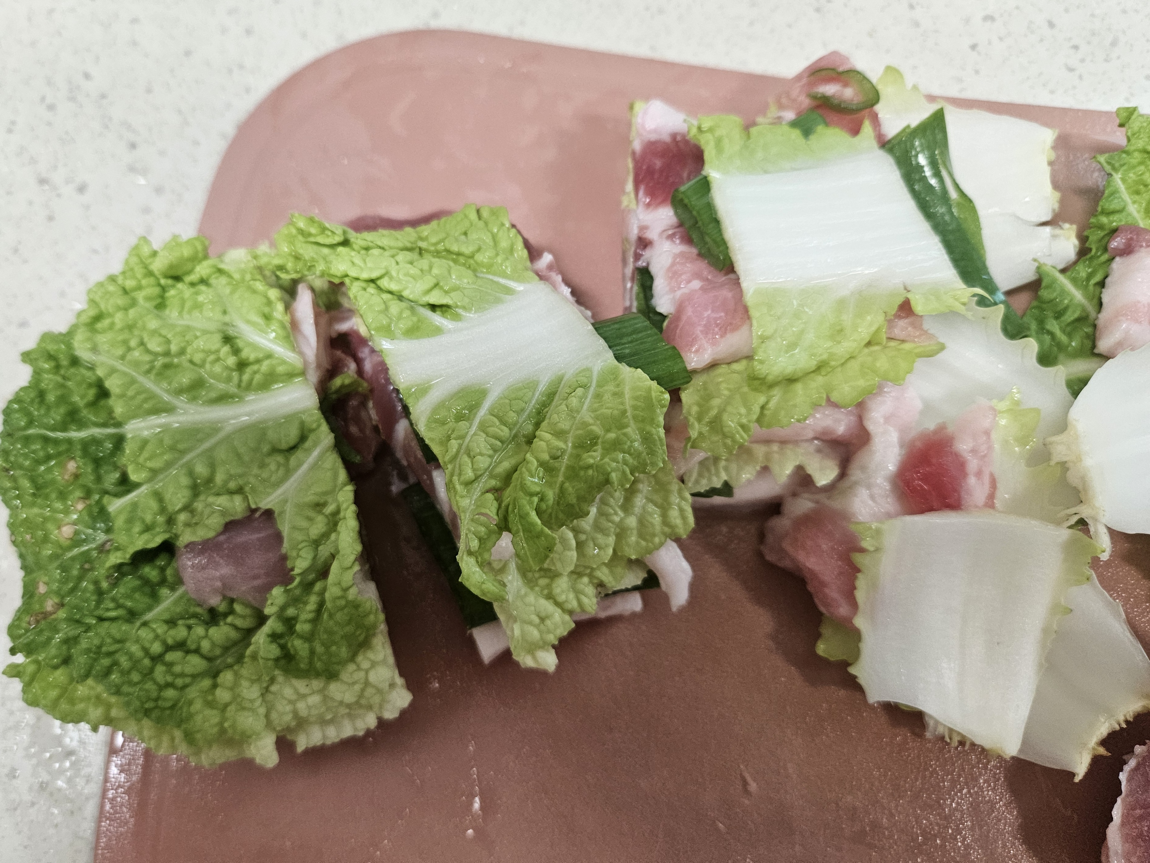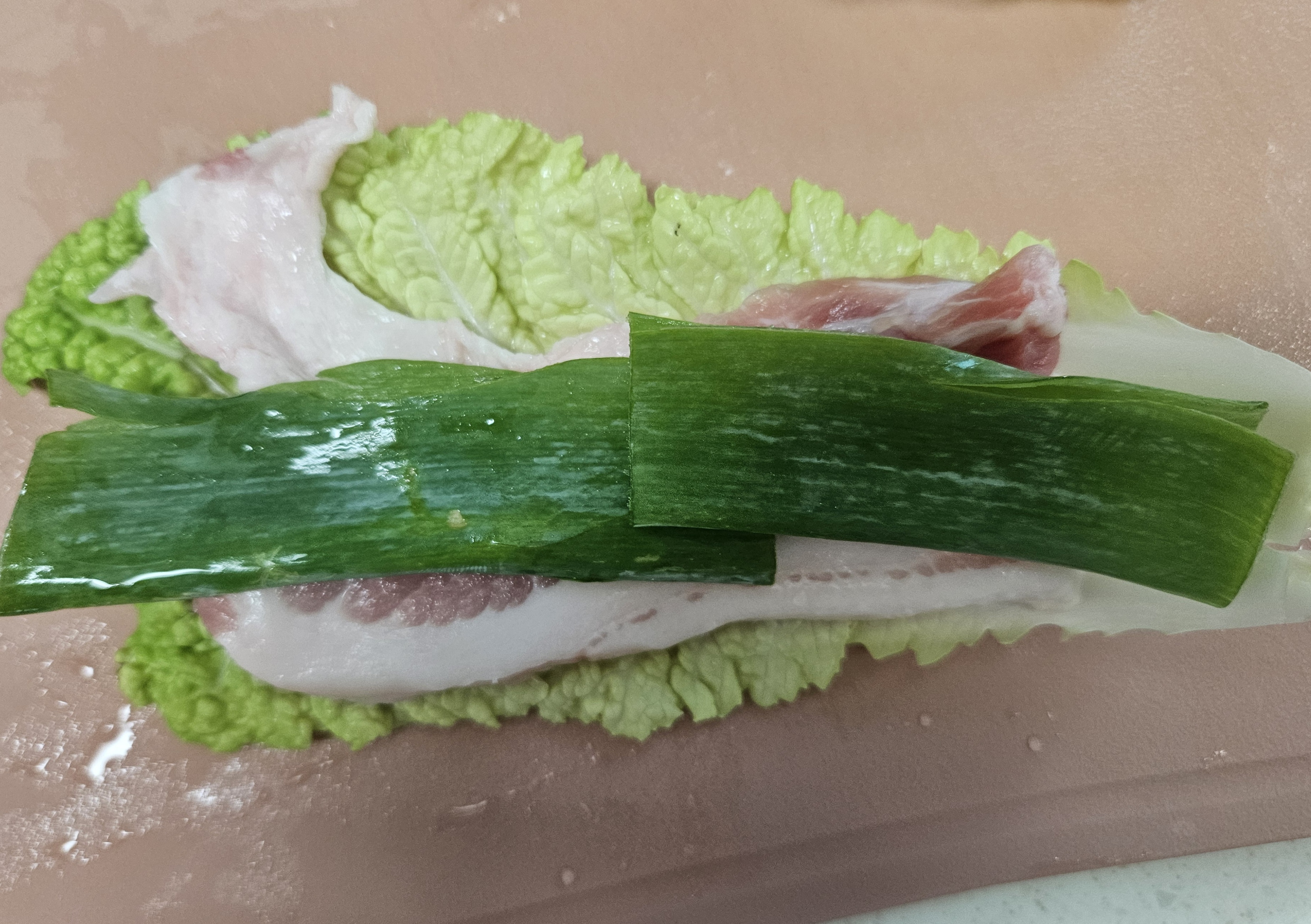 ▼5. 먹기 좋게 자른 알배추, 삼겹살, 대파를