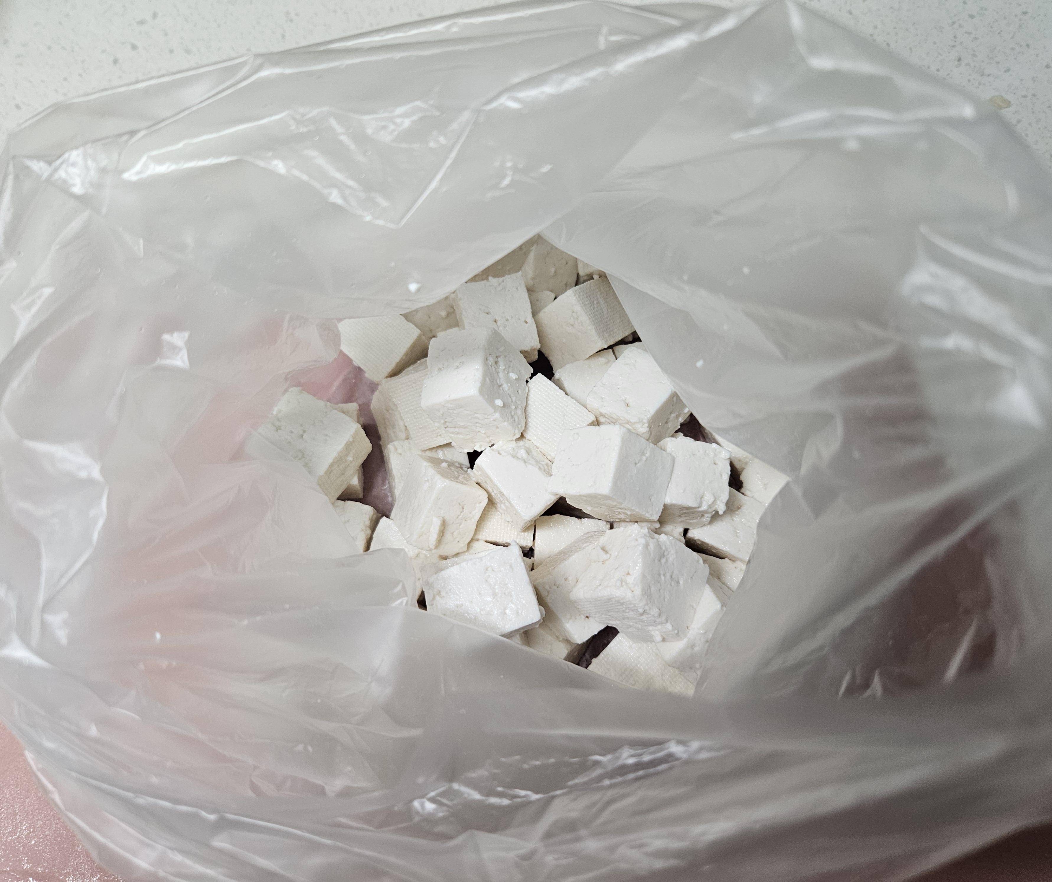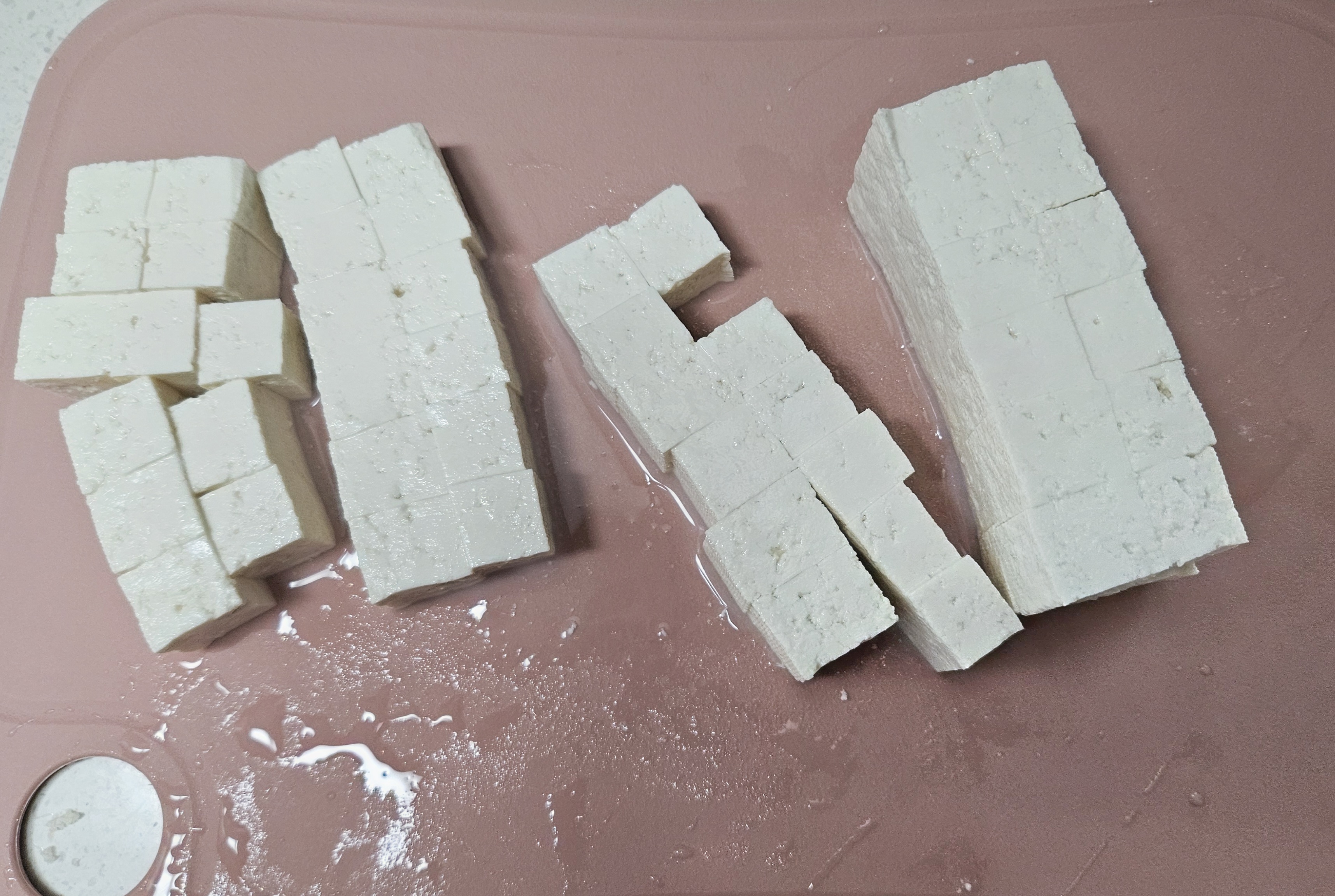 ▼우선 부침용 두부를 깨끗이 한번 씻은 후 깍두기 모양으로 잘라줍니다.