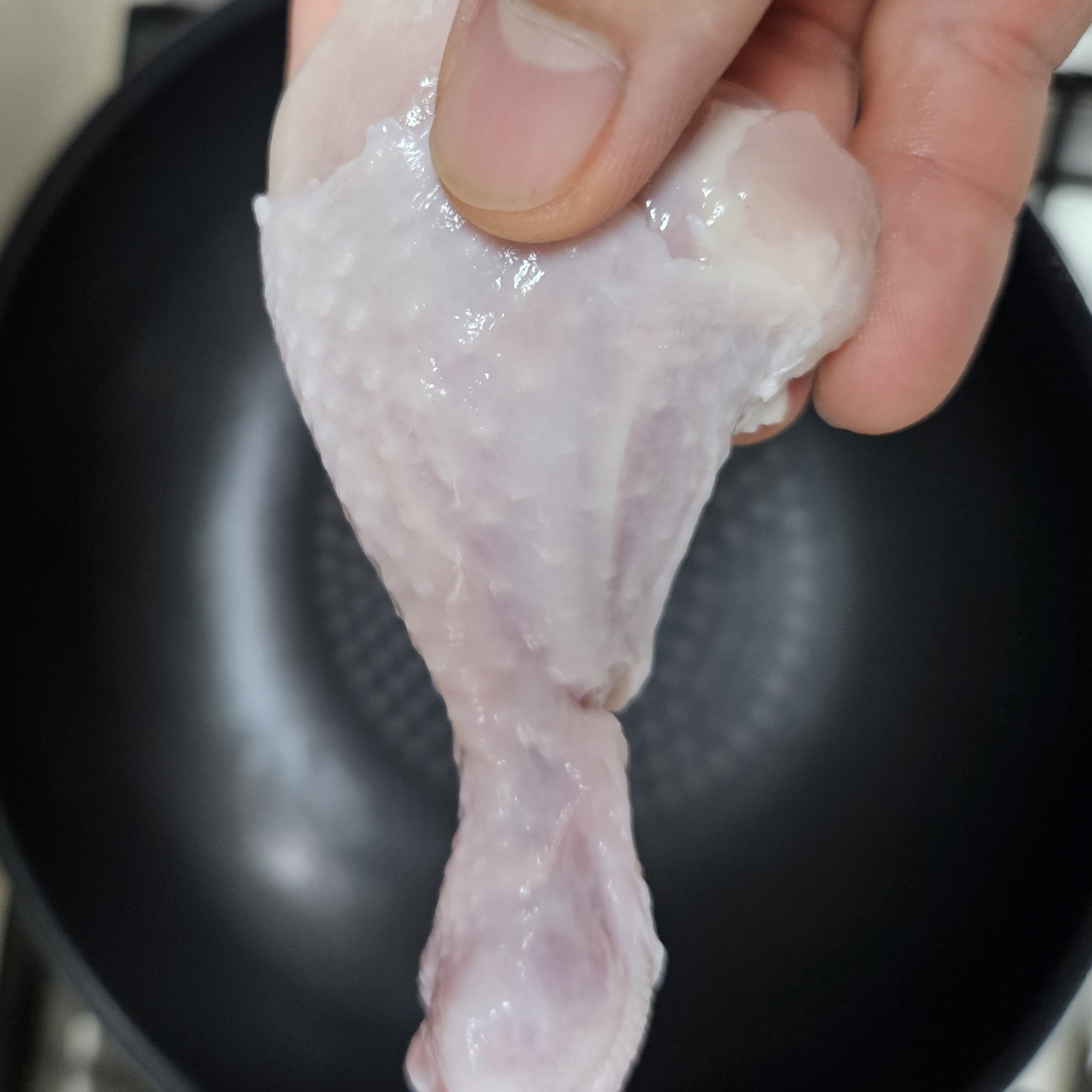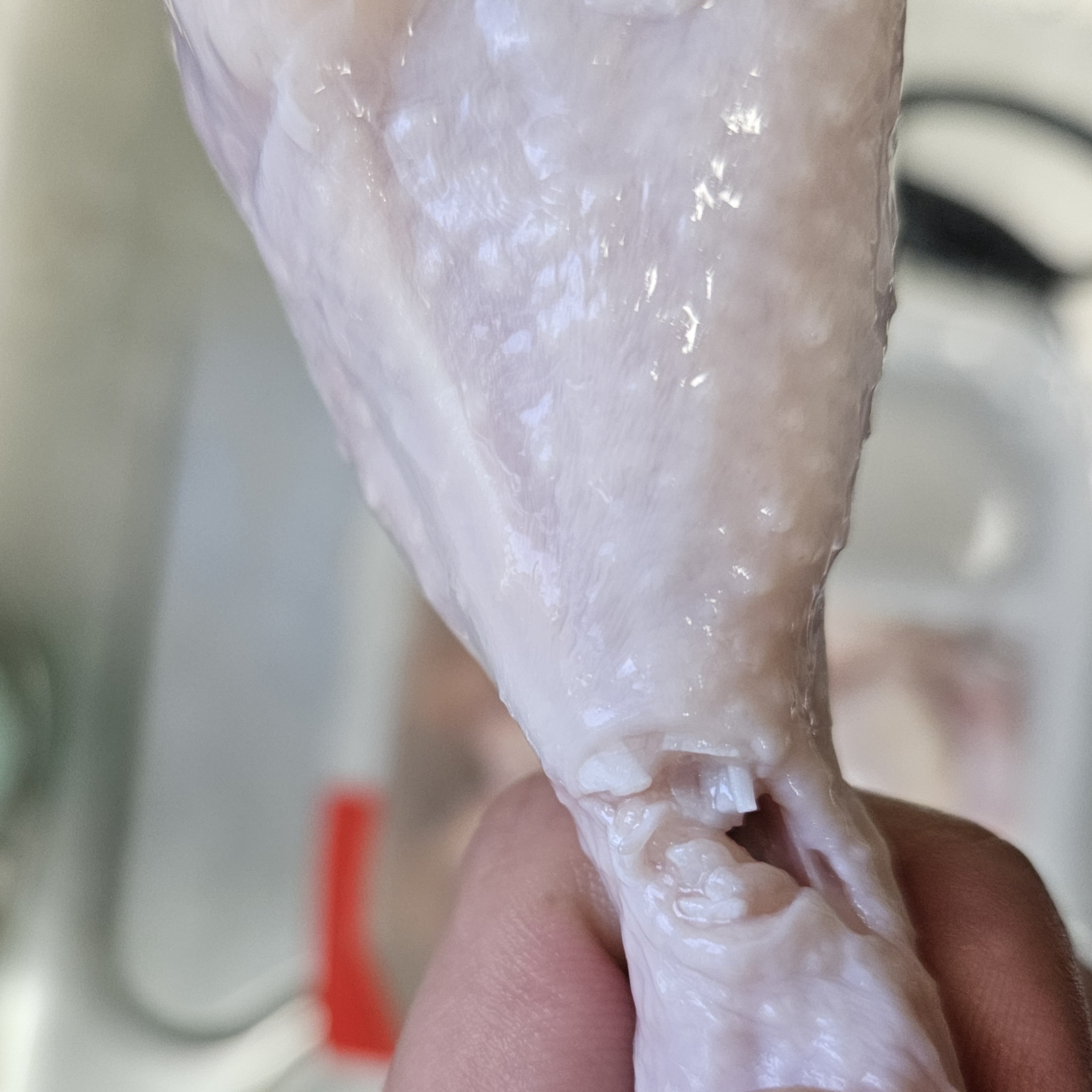 그리고 닭발 쪽 힘줄도 가위로 잘라주세요.