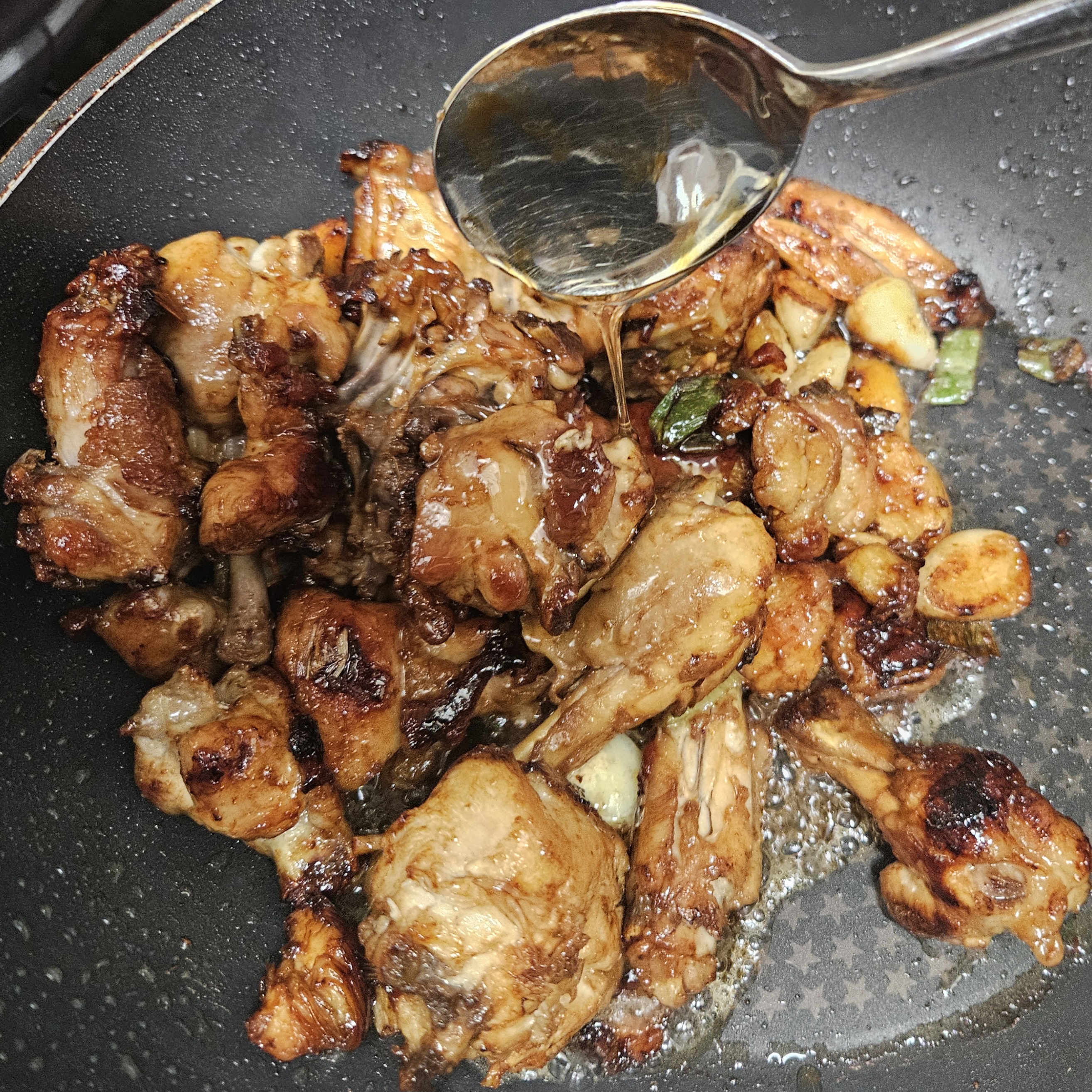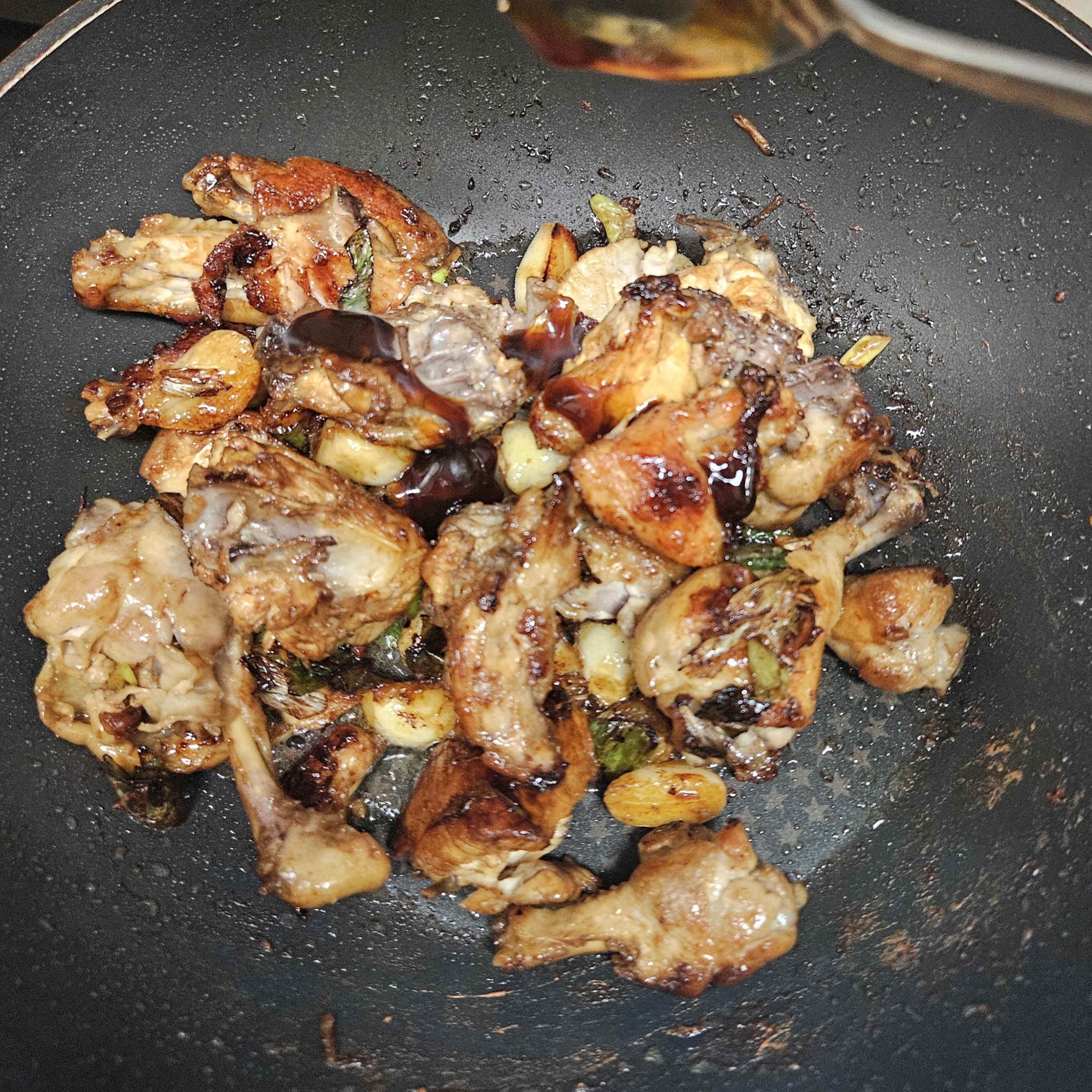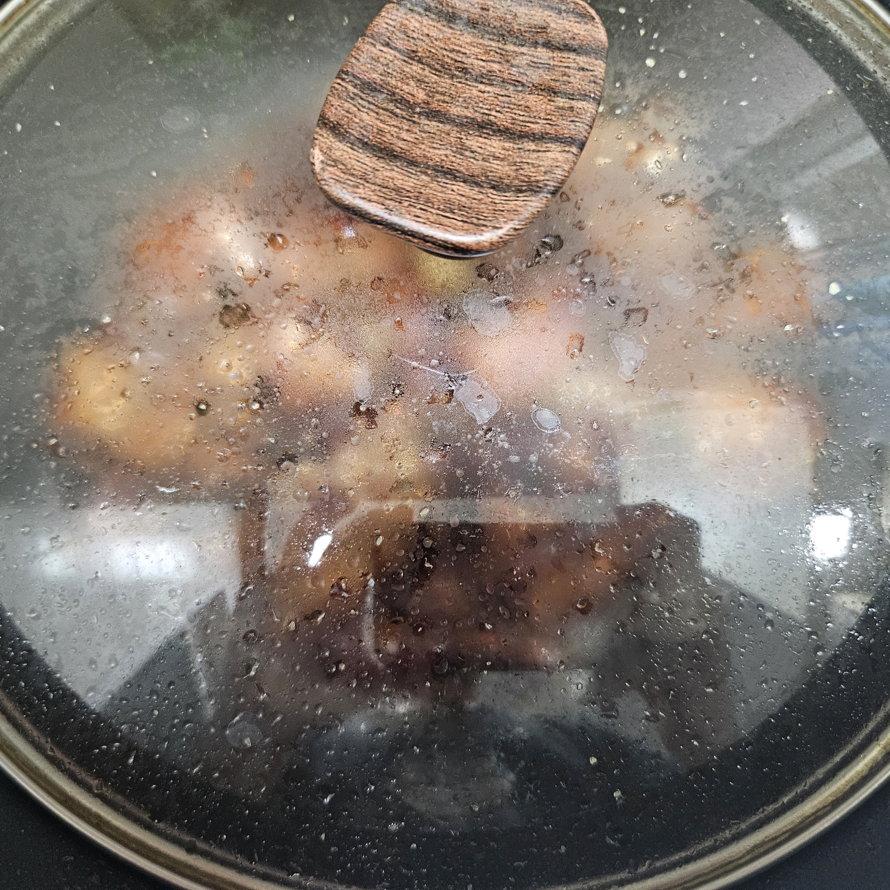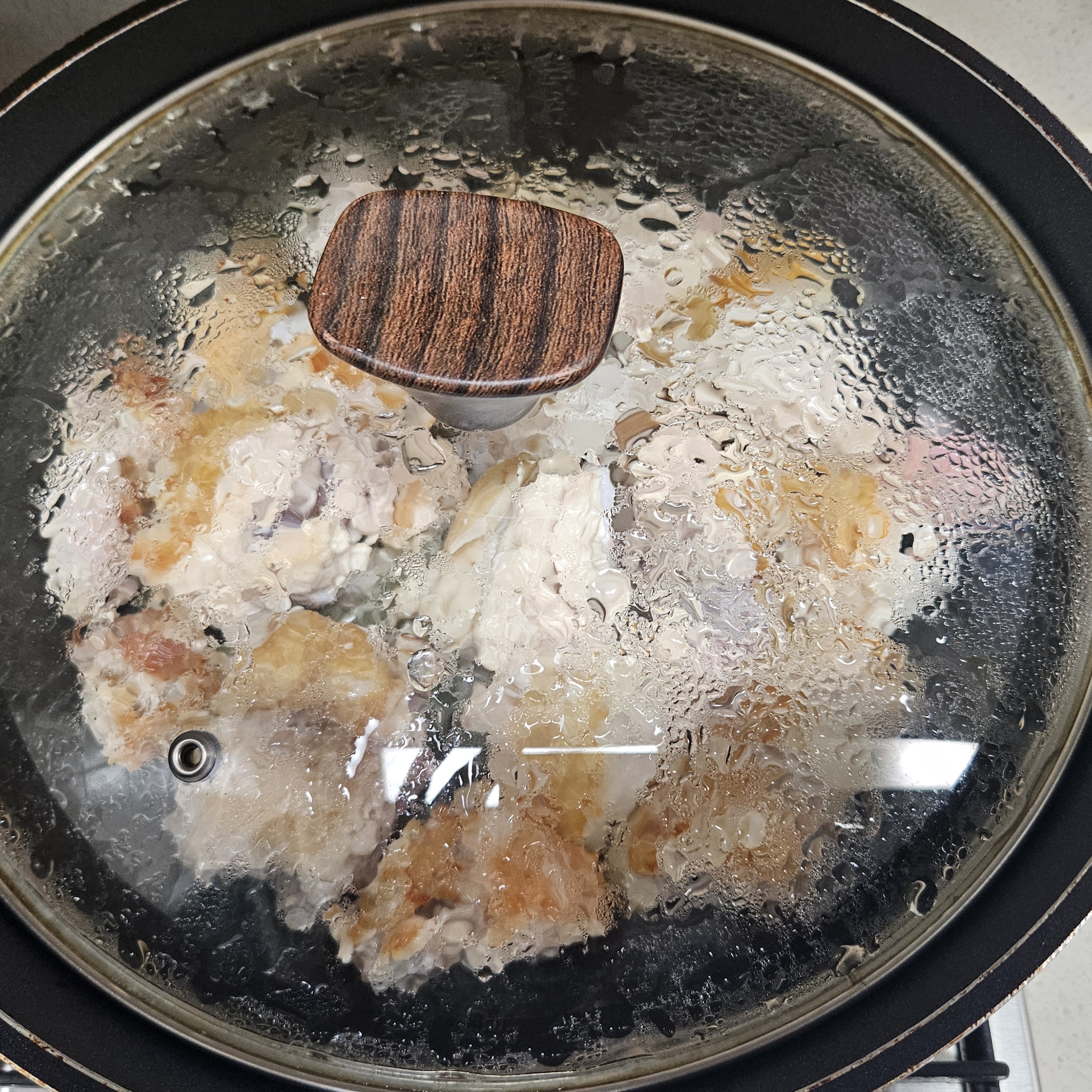 닭을 뒤집어 준 다음 뚜껑을 덮고