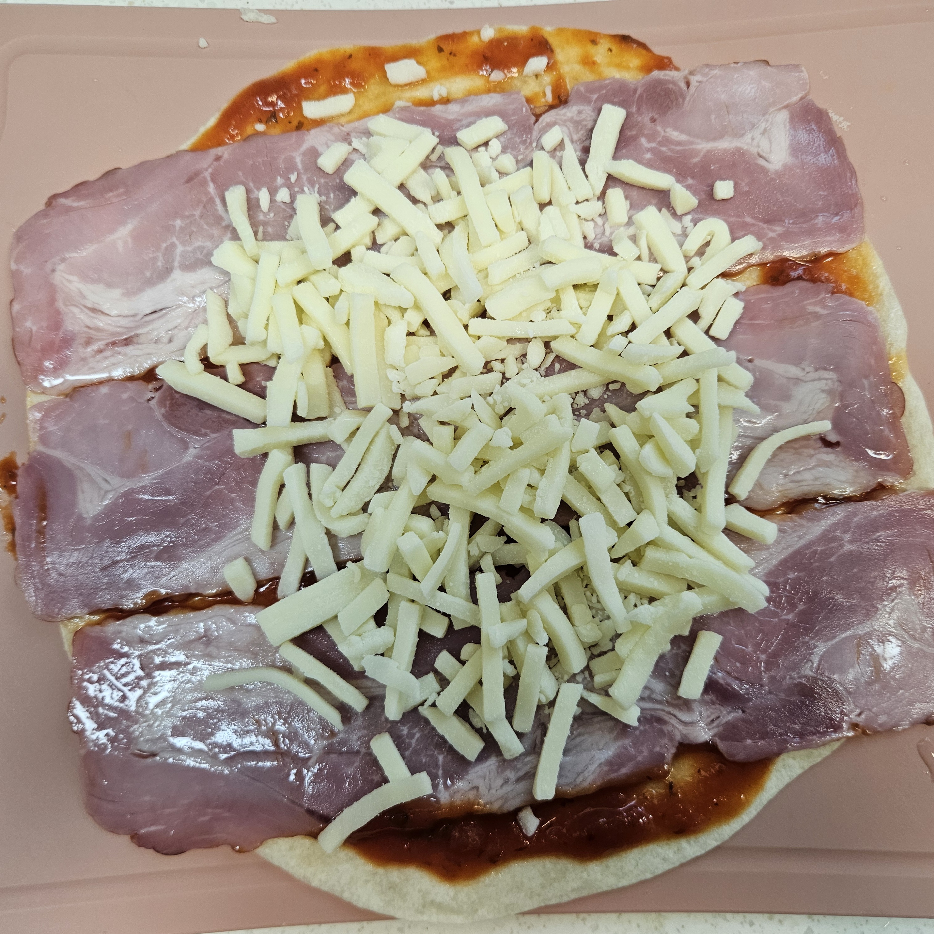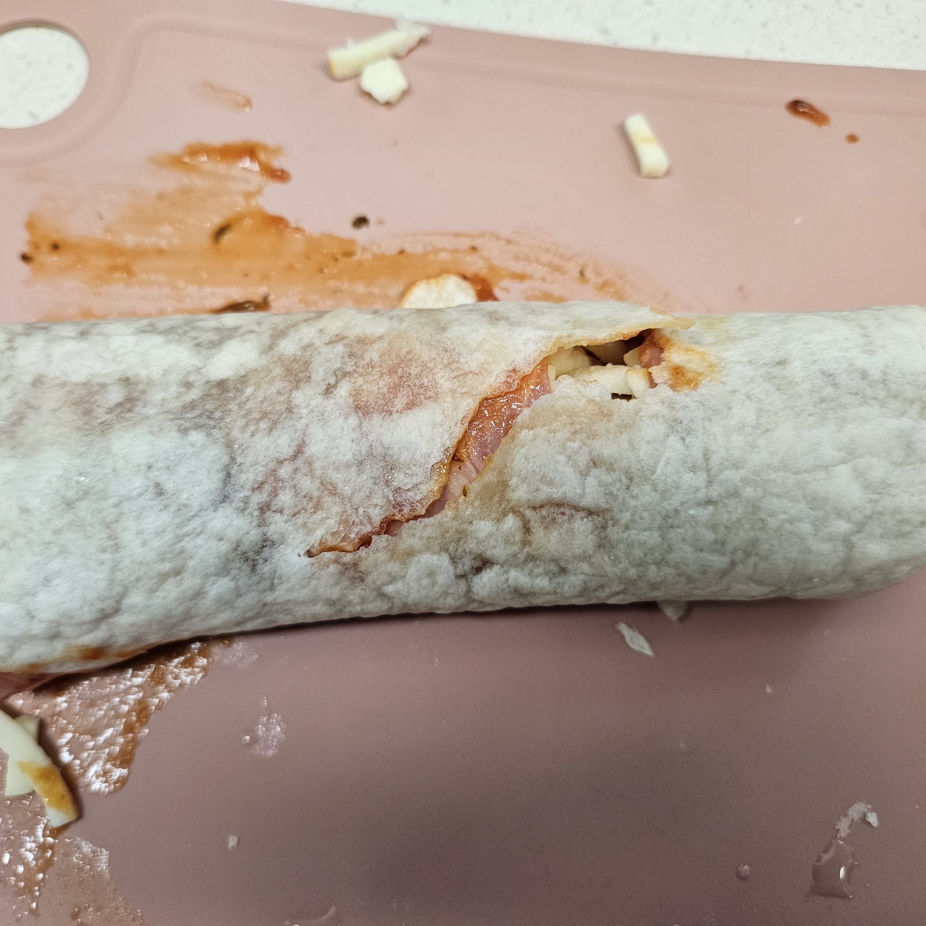 그 위에 또띠아 한 장을 더 깔아줍니다.