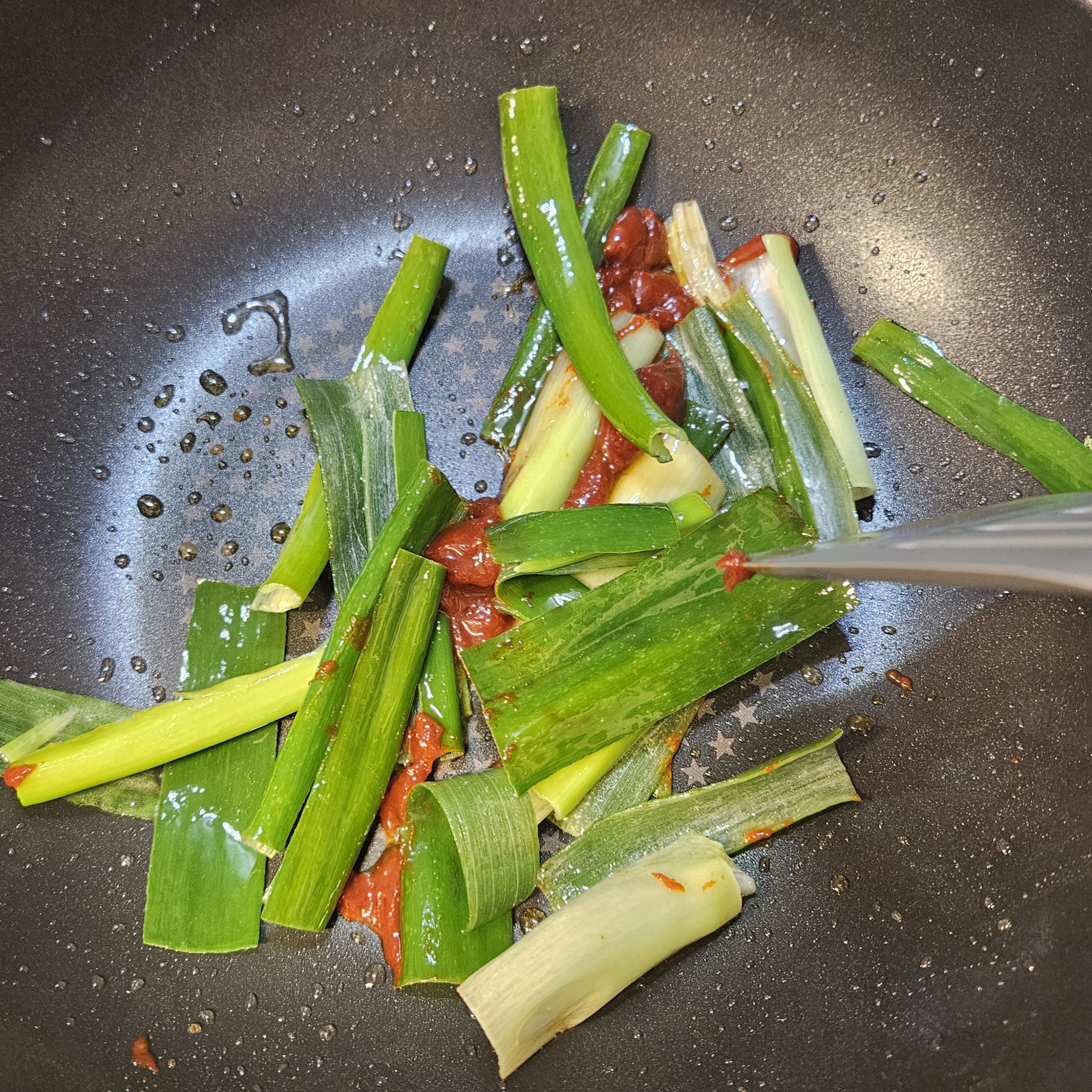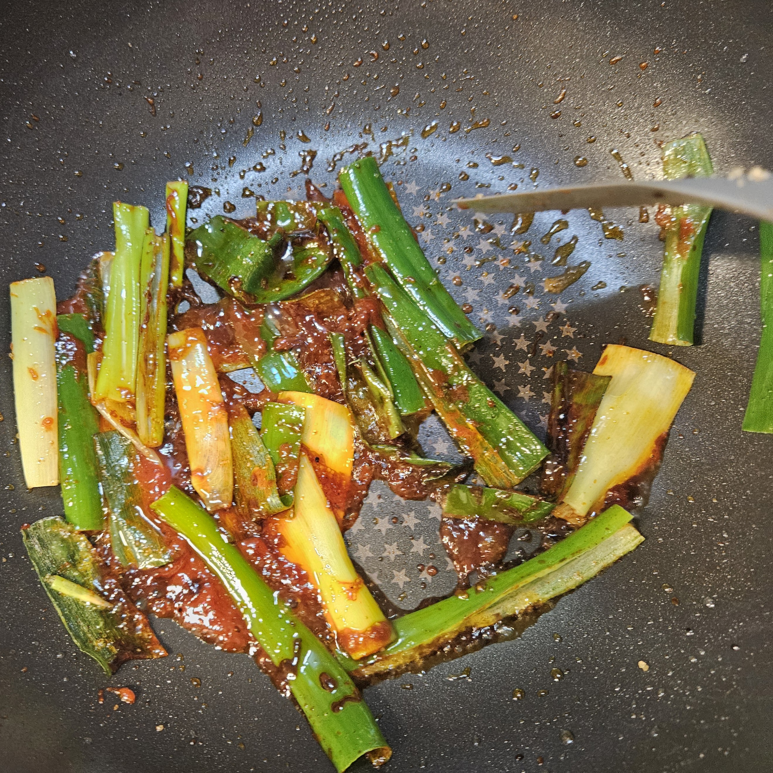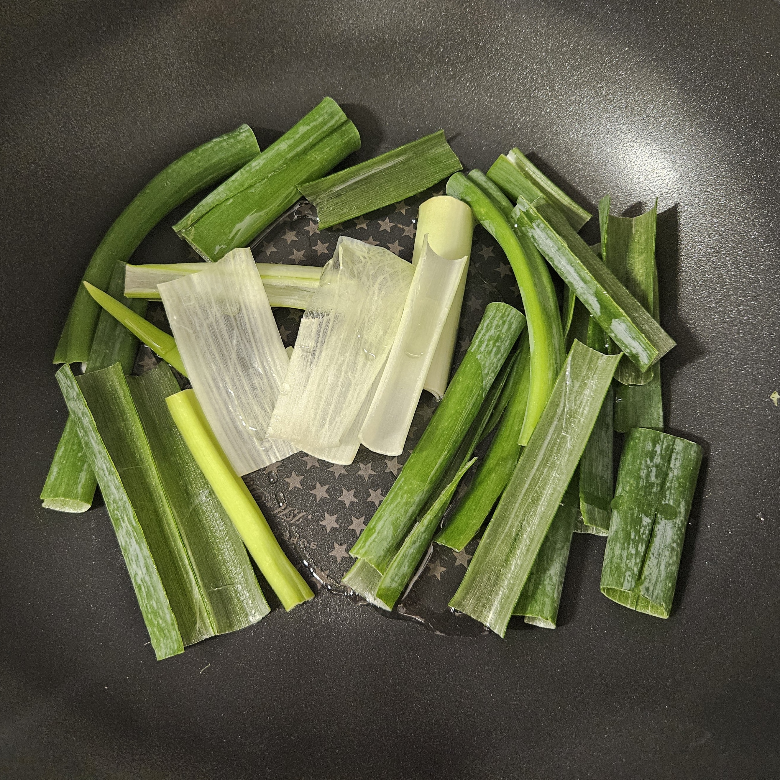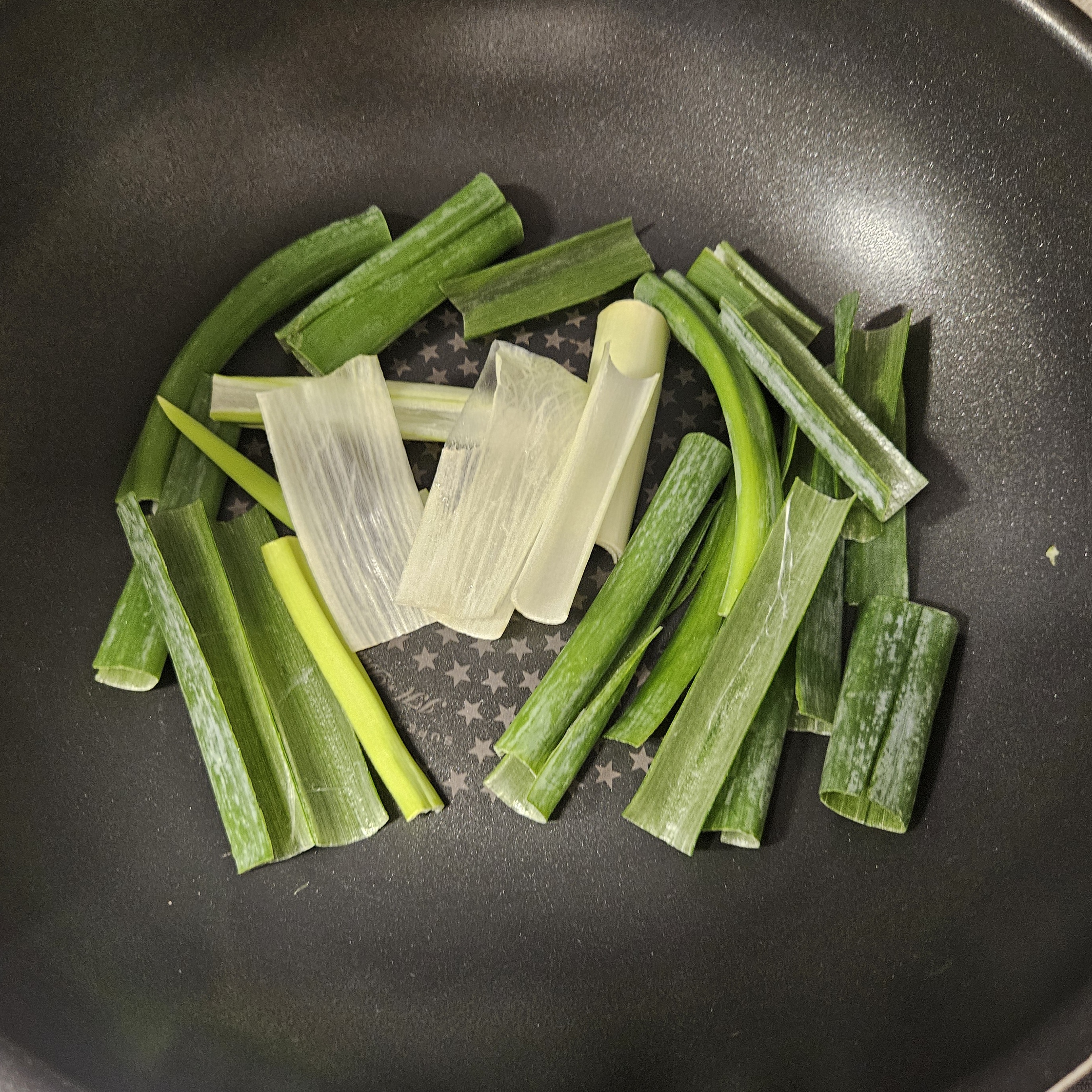 ▼2. 팬 위에 잘라놓은 대파를 넣고