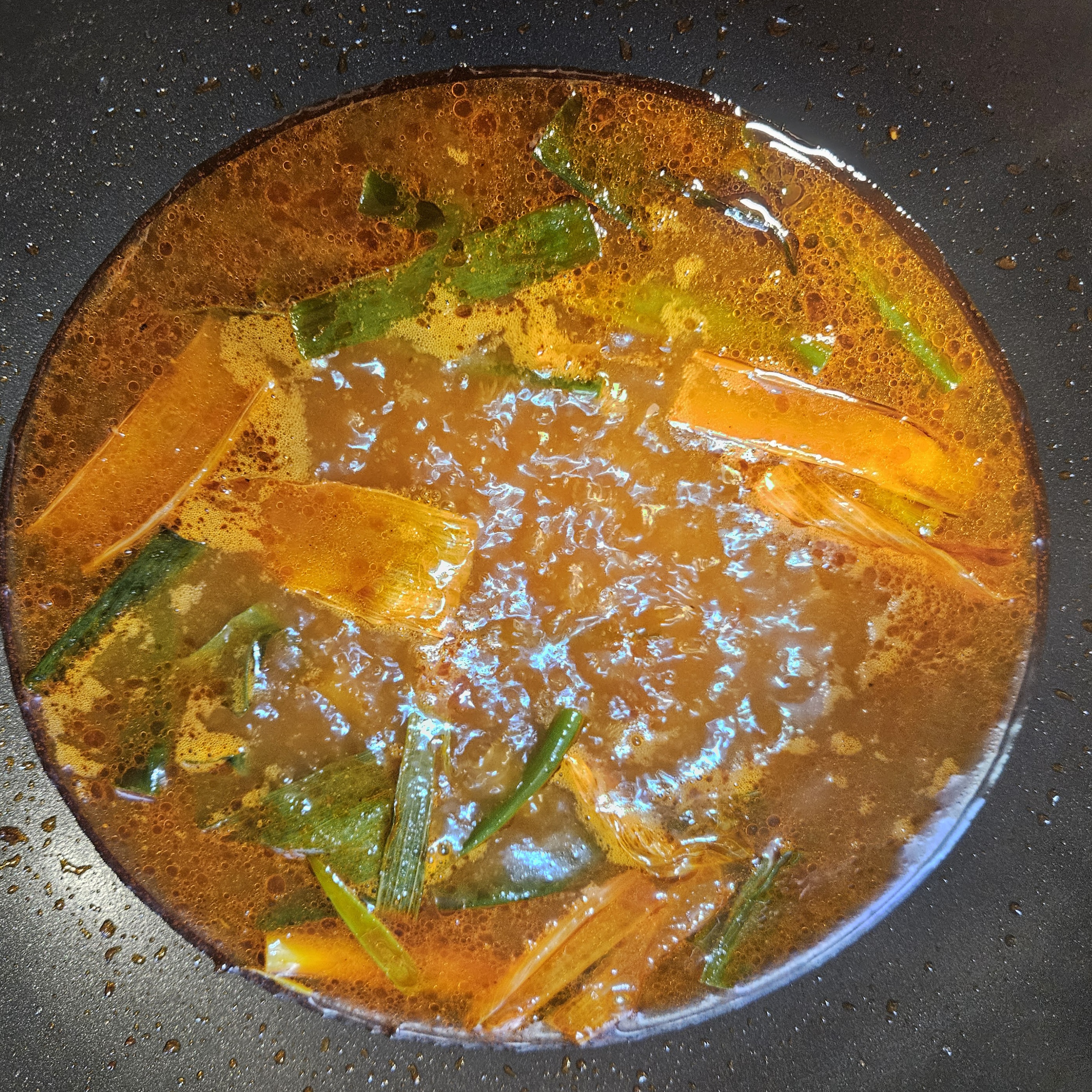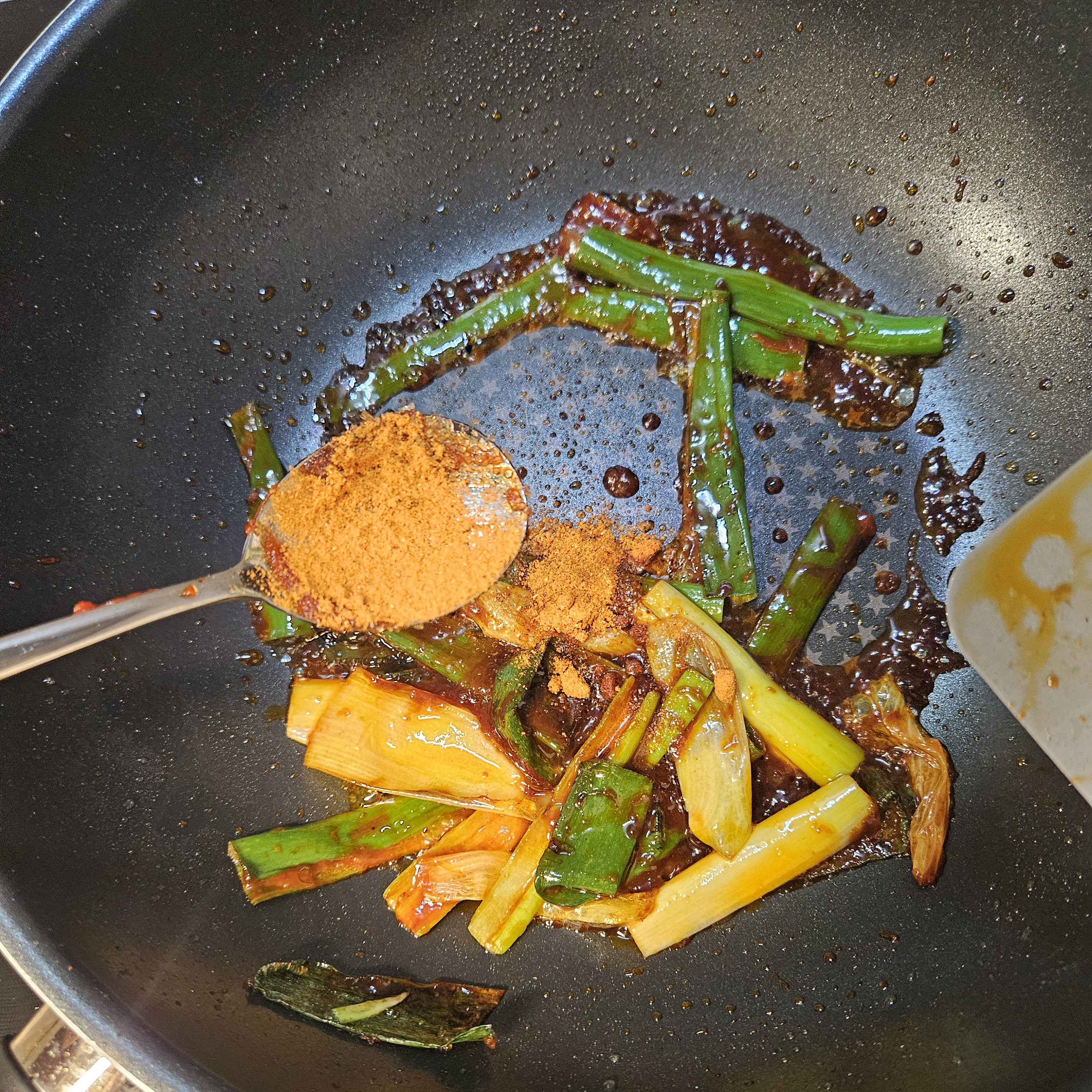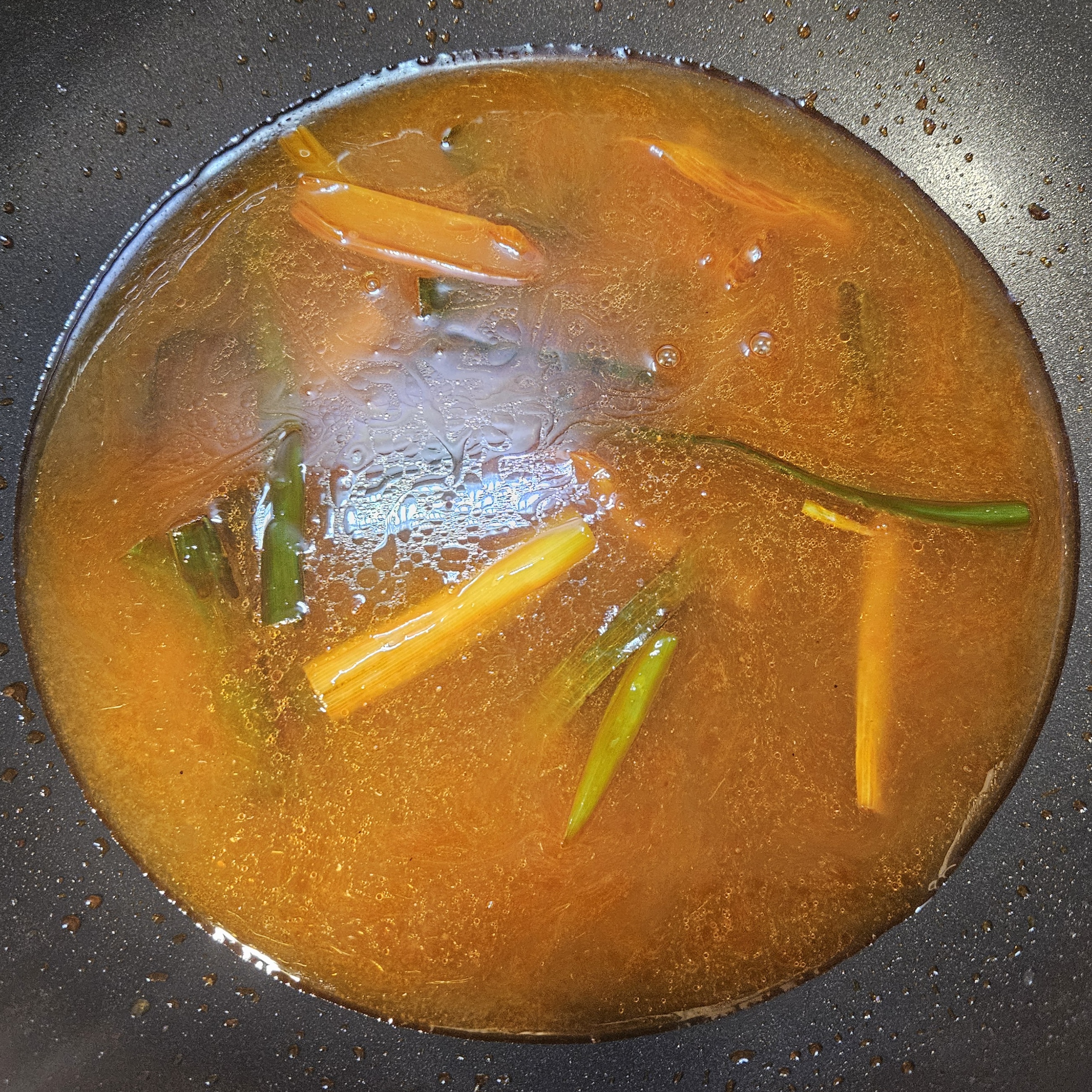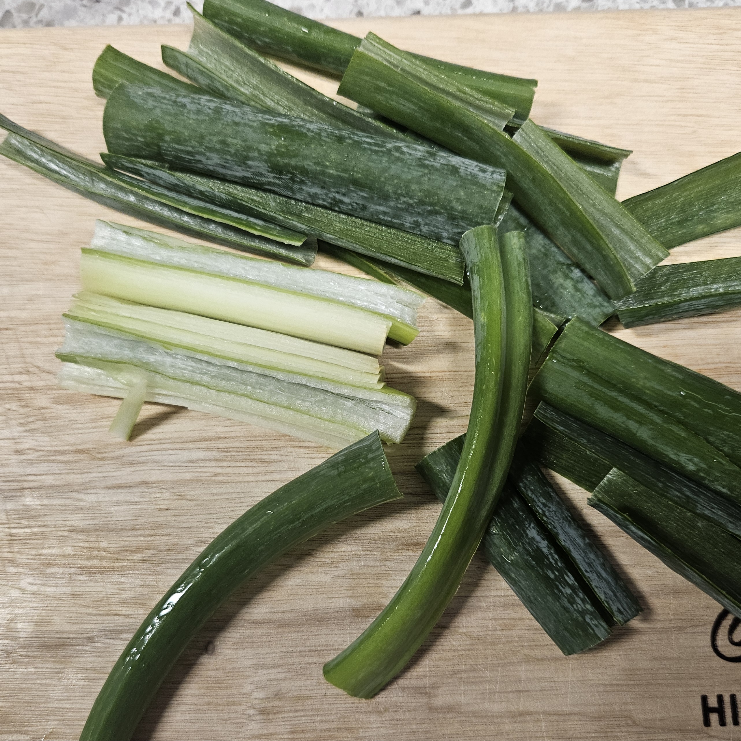 ▼2. 팬 위에 잘라놓은 대파를 넣고