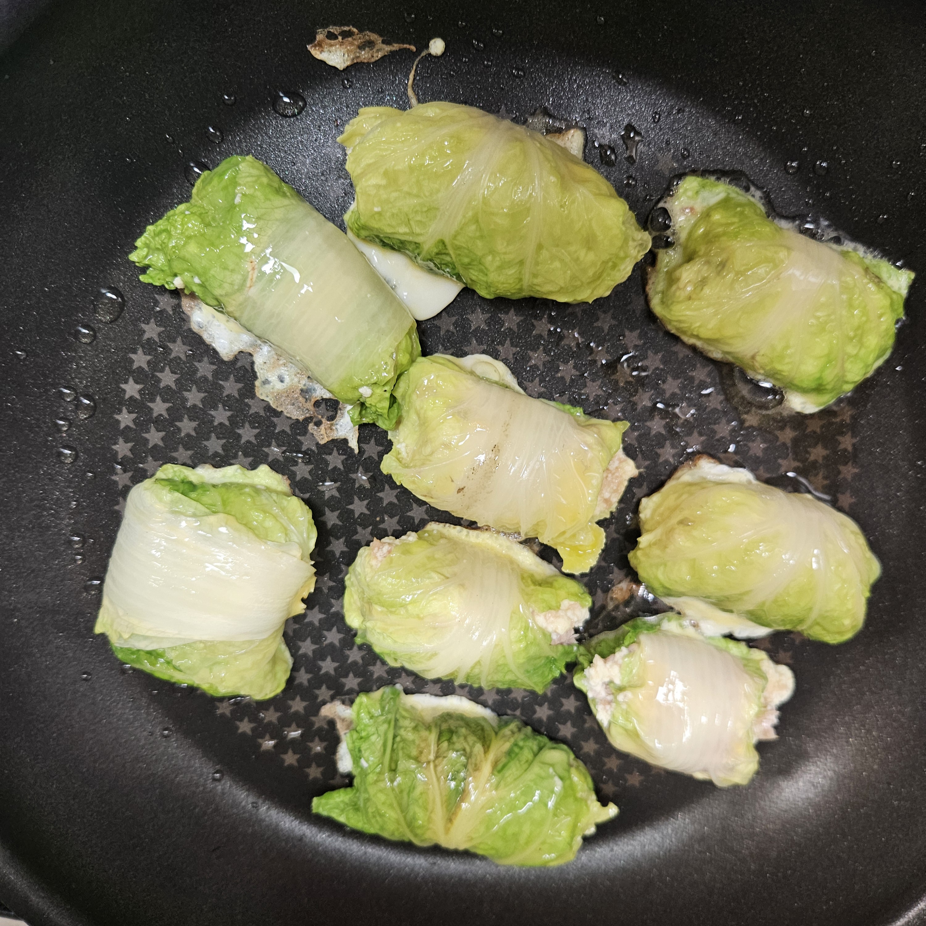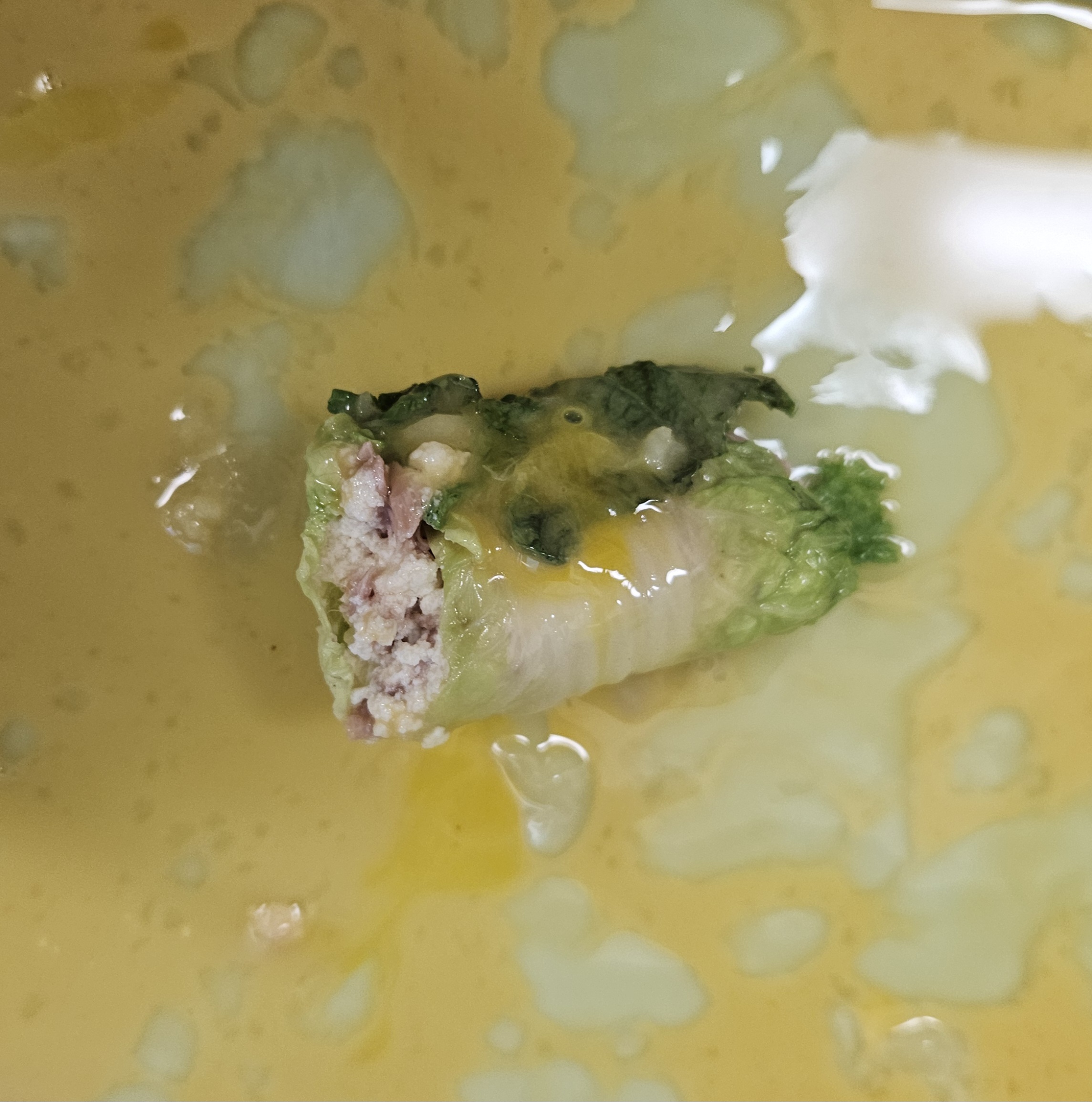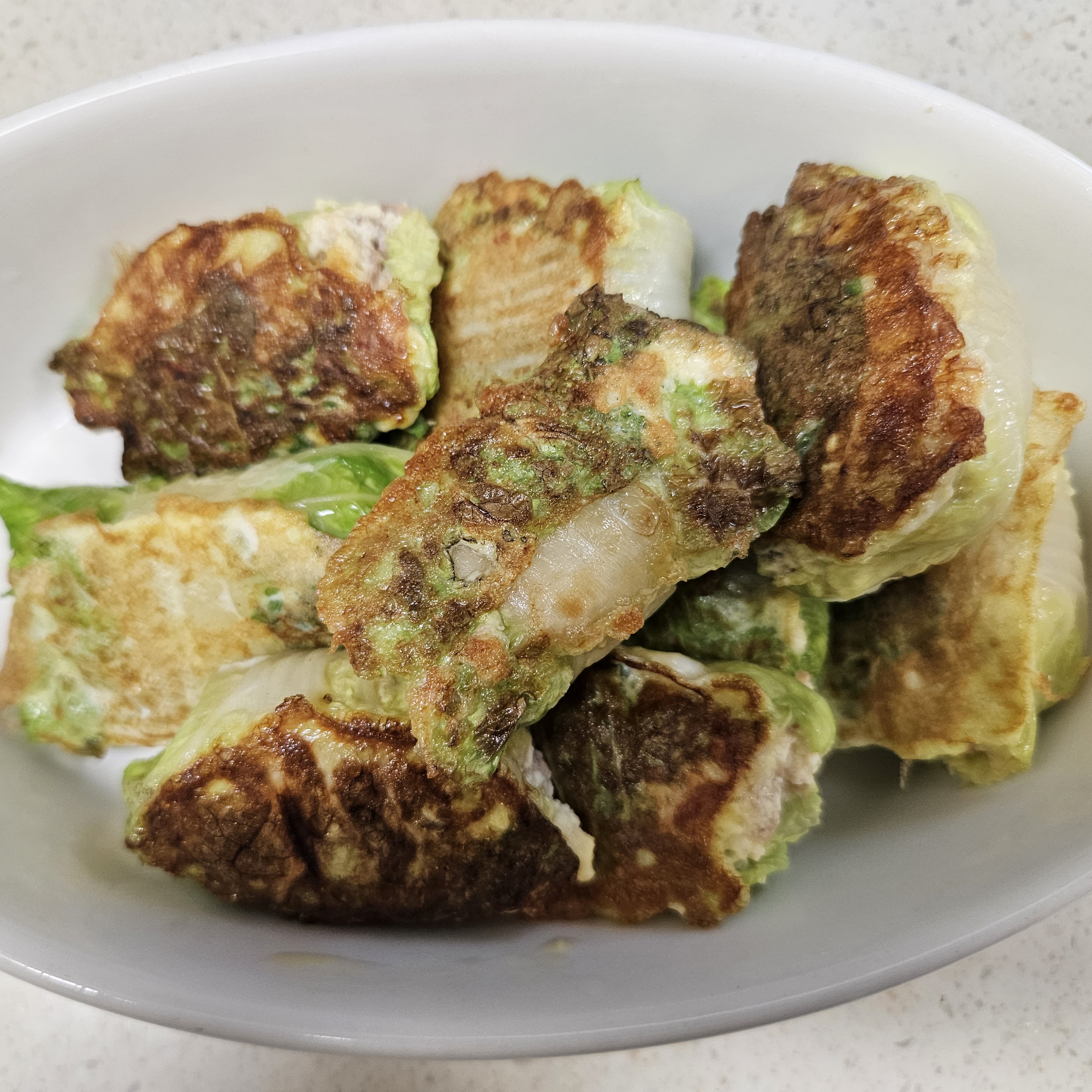 ▼남은 알배추 만두 속이랑 계란물 넣고