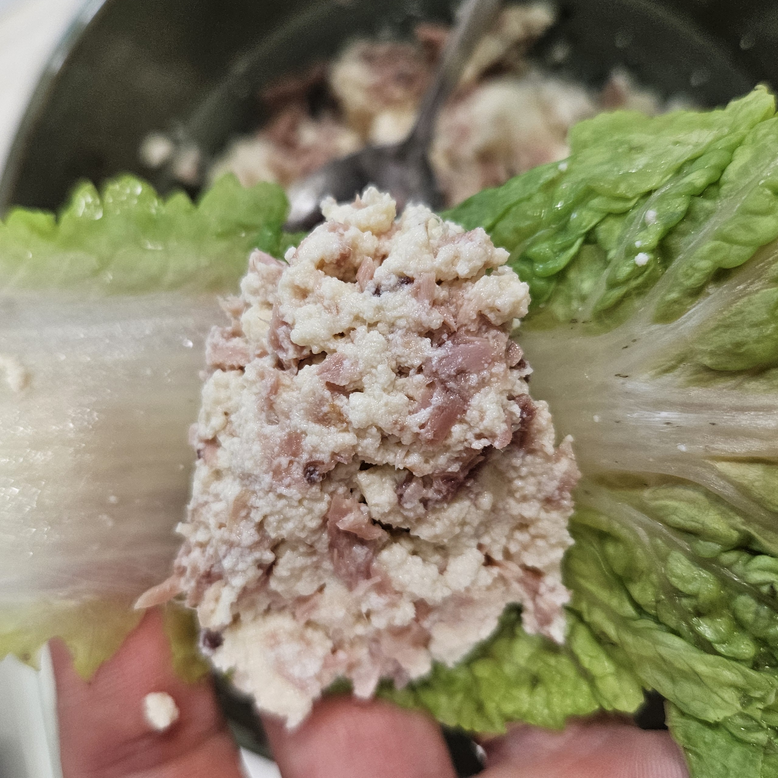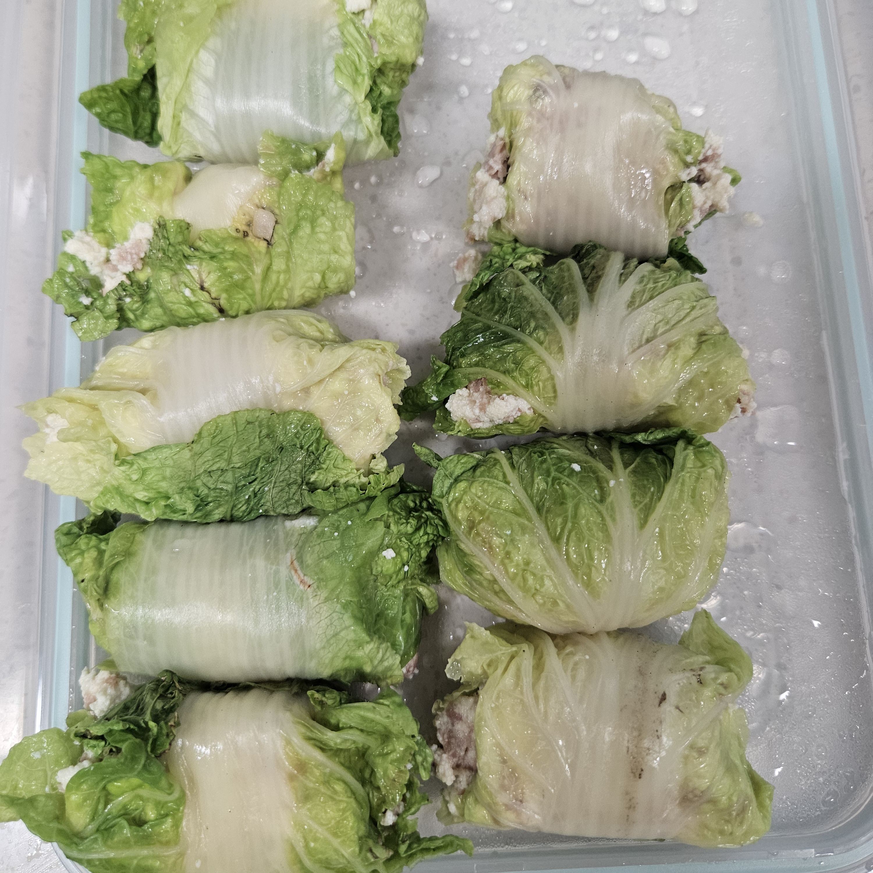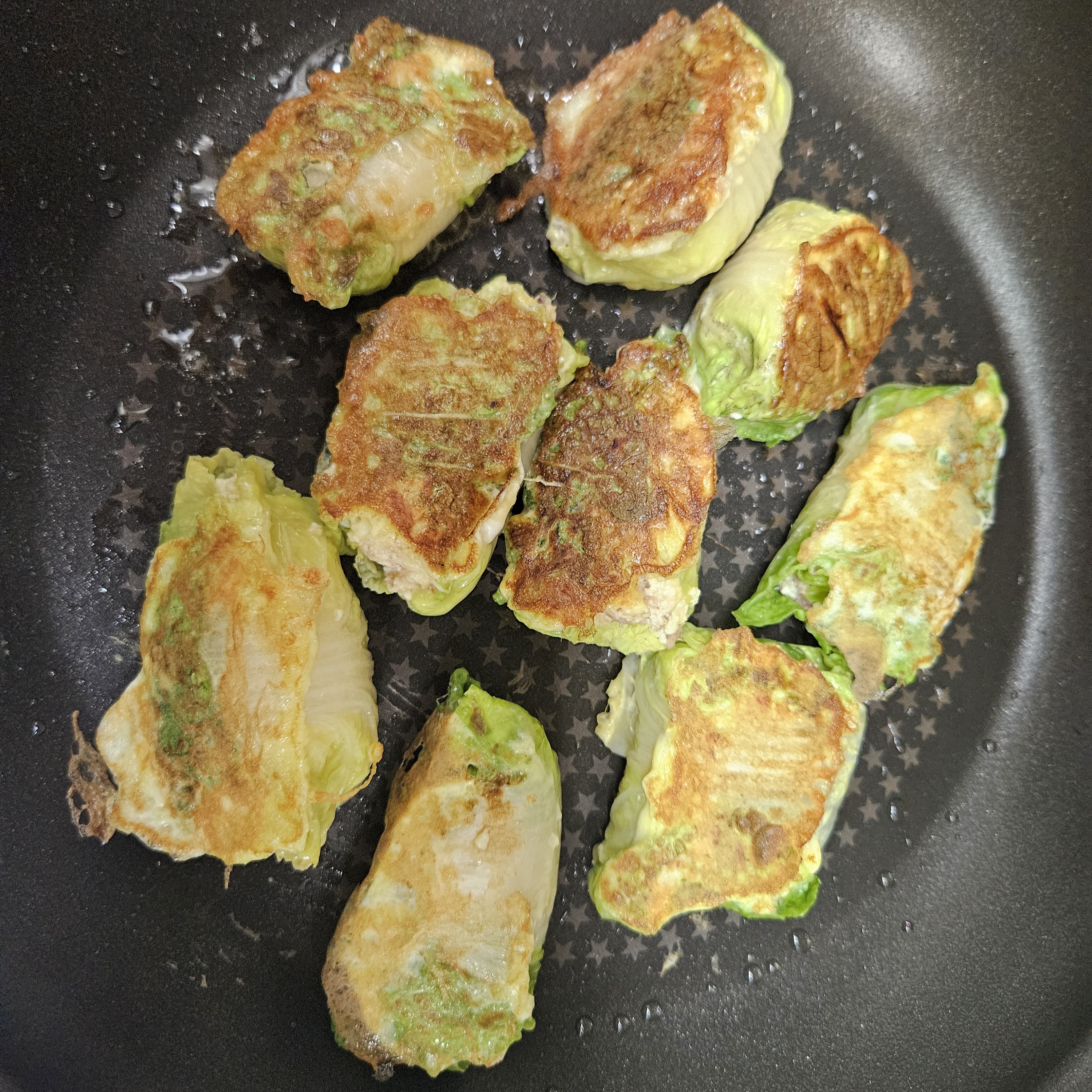 ▼남은 알배추 만두 속이랑 계란물 넣고